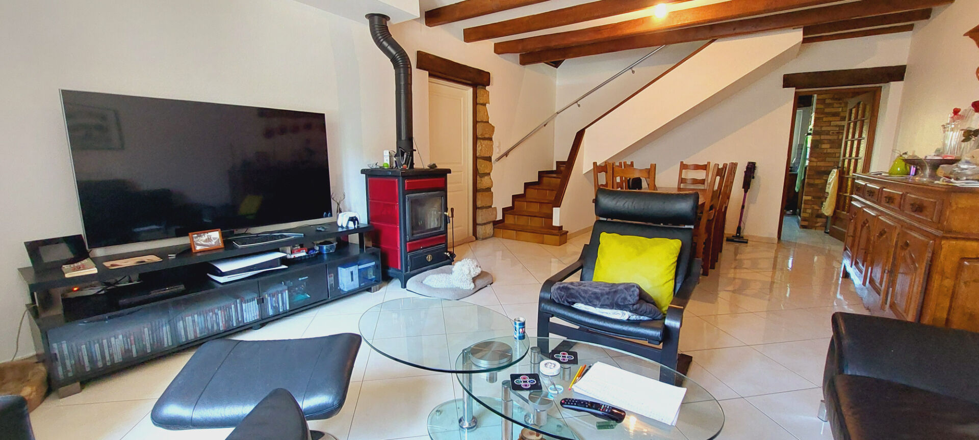 une charmante maison de village comprenant une entrée, une cuisine avec un accès direct sur une véranda et une terrasse , un salon-séjour, au 1er étage 3 chambres, un dressing, une salle de bains avec douche et baignoire, une mezzanine. Au dessus 2 autres chambres et une salle de jeux.