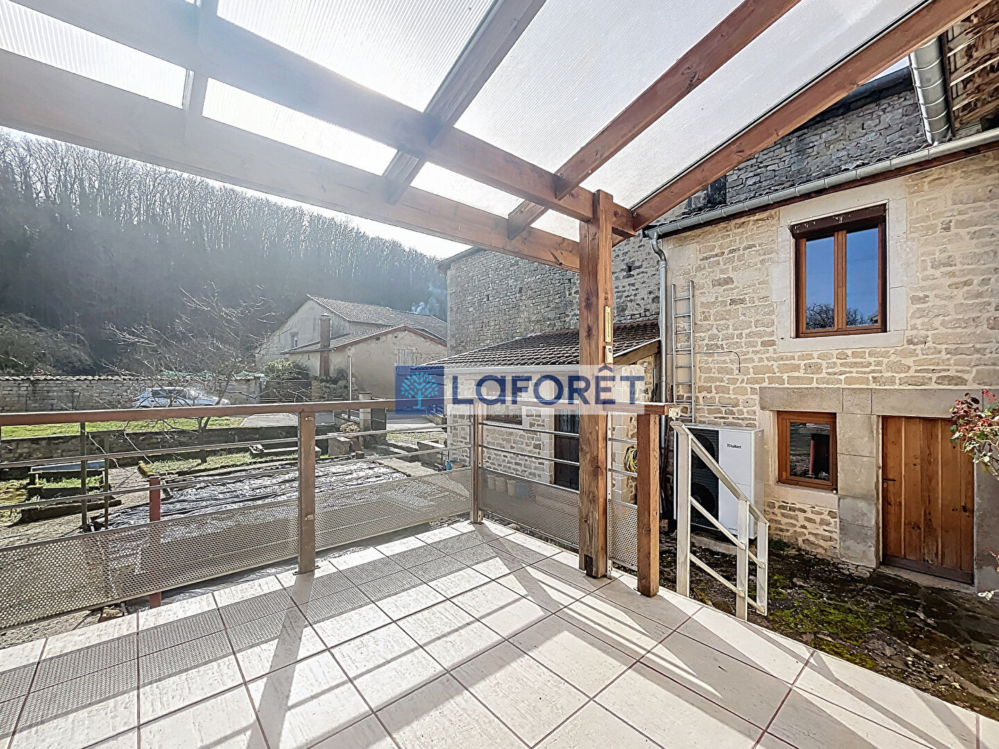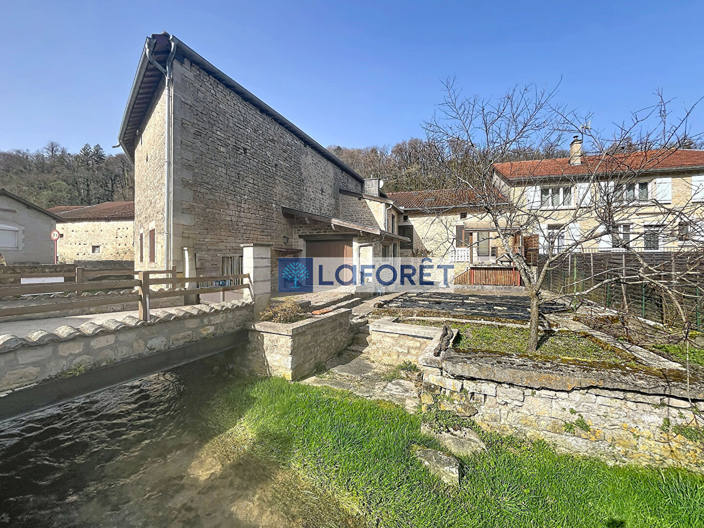 Chauffage central pompe à chaleur récent, garage, cave, remise, jardin avec petit ruisseau fort agréable.