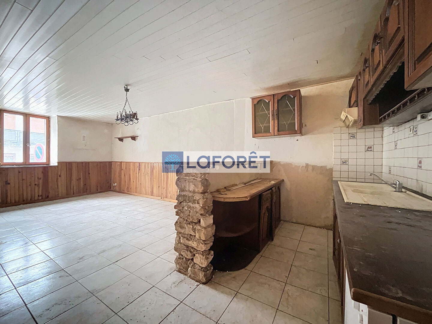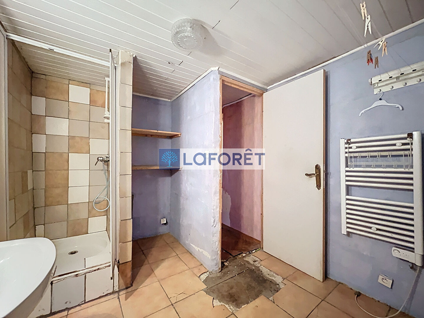 Préparez vos outils, cette maison se compose d'un garage, sur un demi palier, un salon avec espace cuisine et à l'étage, 2 chambres, une salle d'eau et un WC et cave sous le salon.