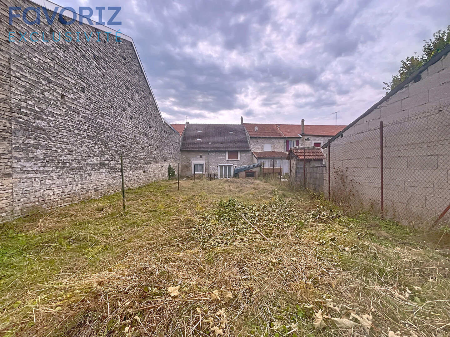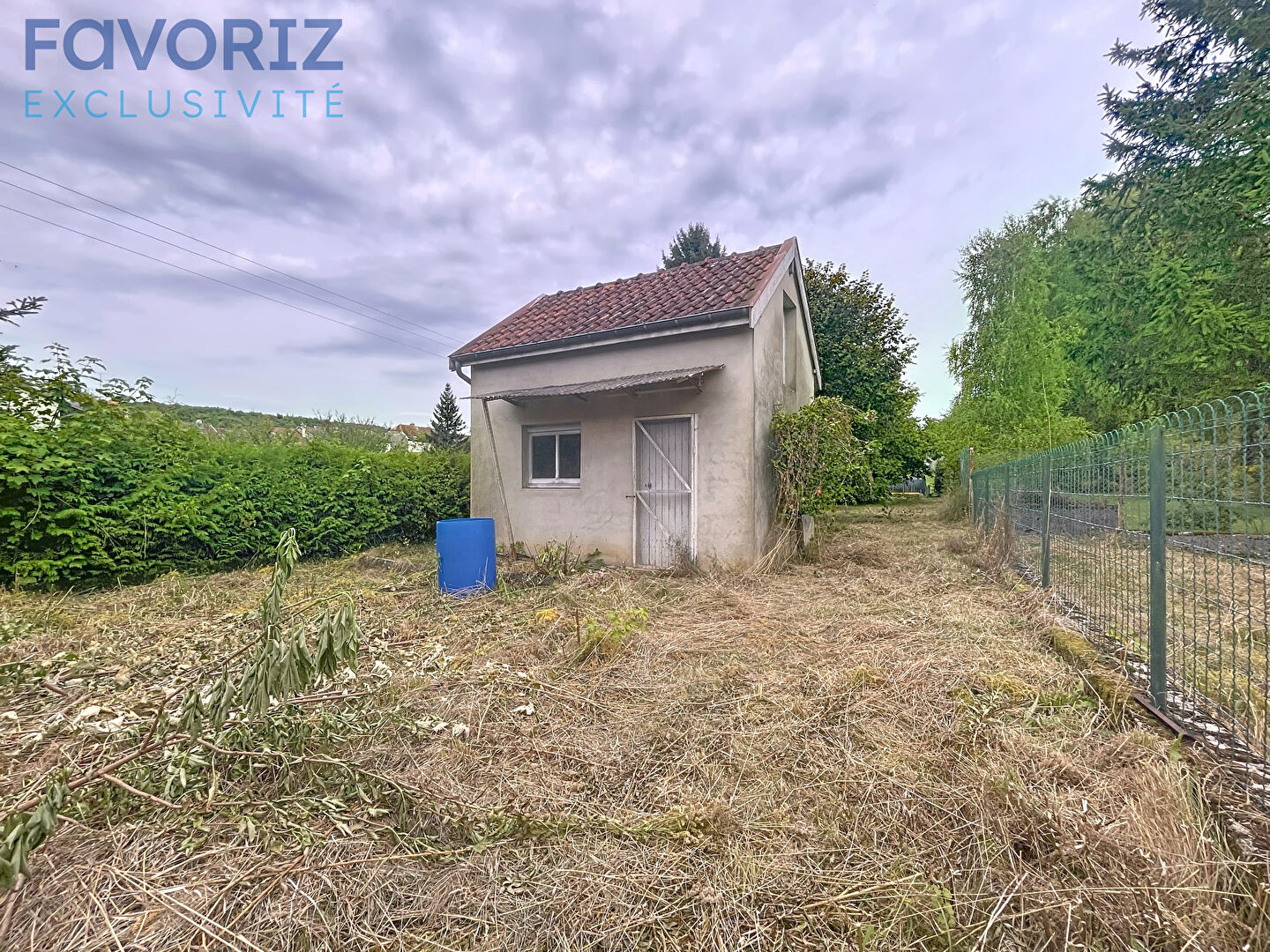 Terrain attenant à l'arrière de la maison avec cabanon.