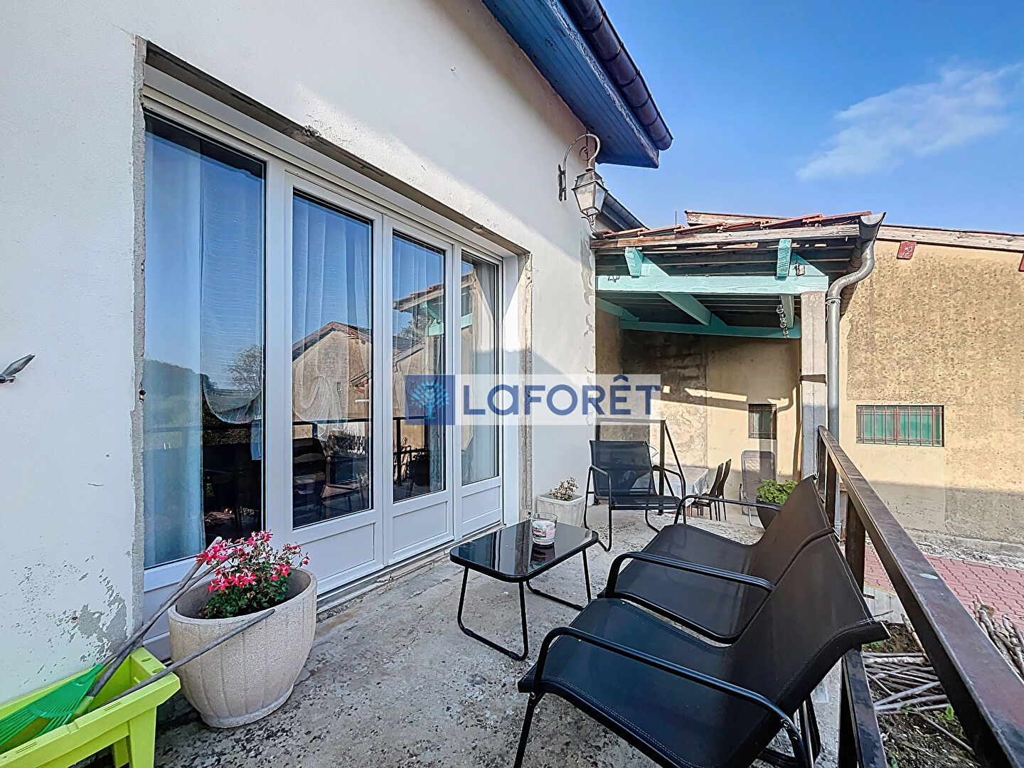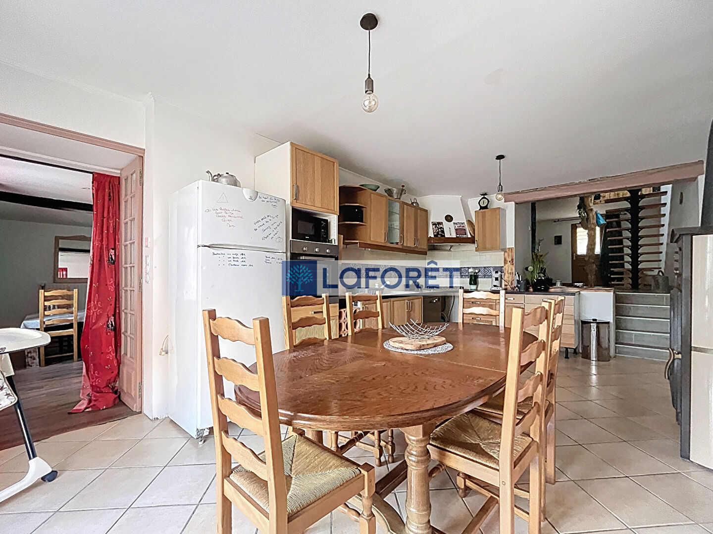 Un garage (avec son grenier) attenant à la maison, un couloir d'accès direct entre le devant de la maison et la pièce de vie.
