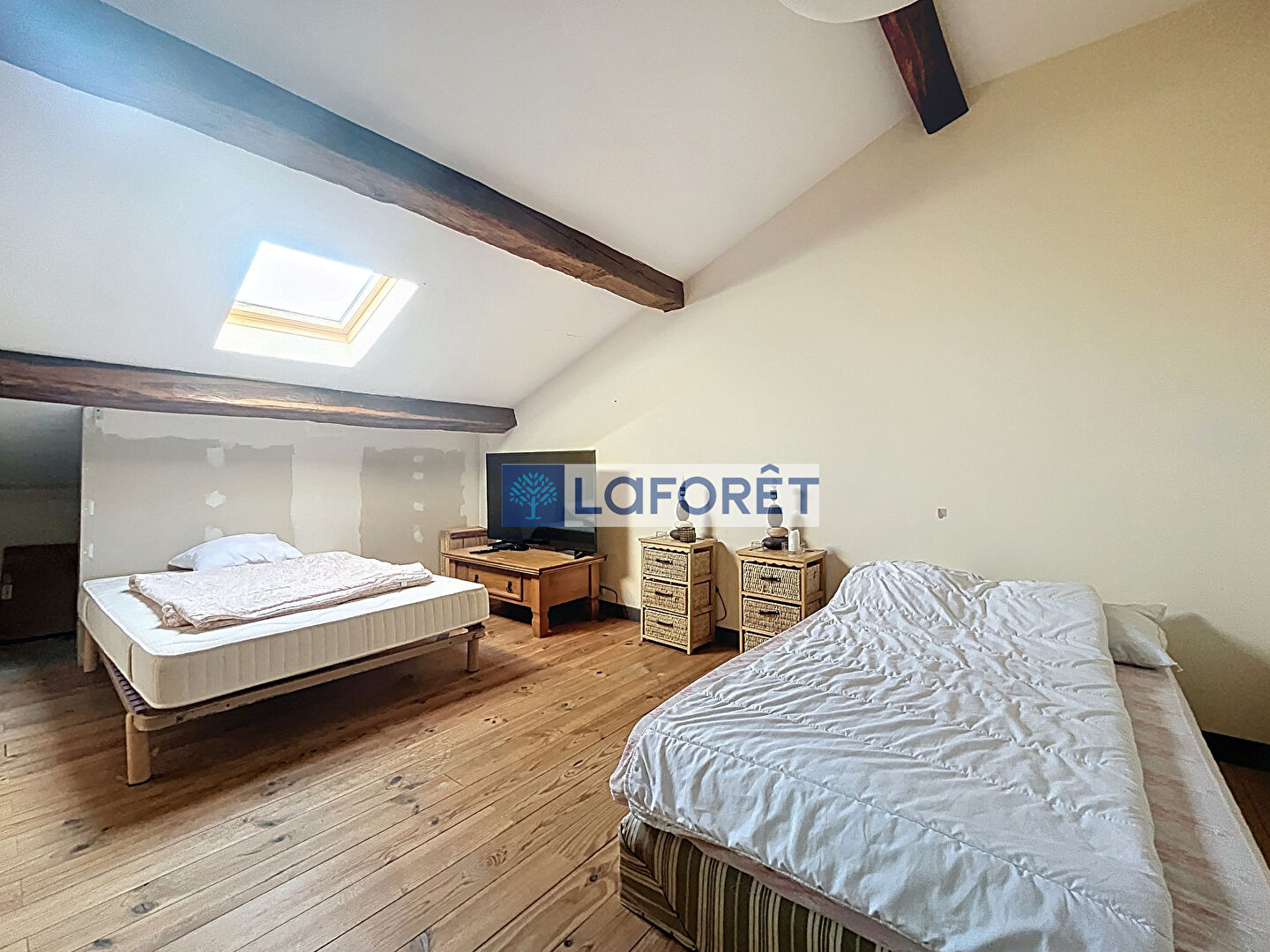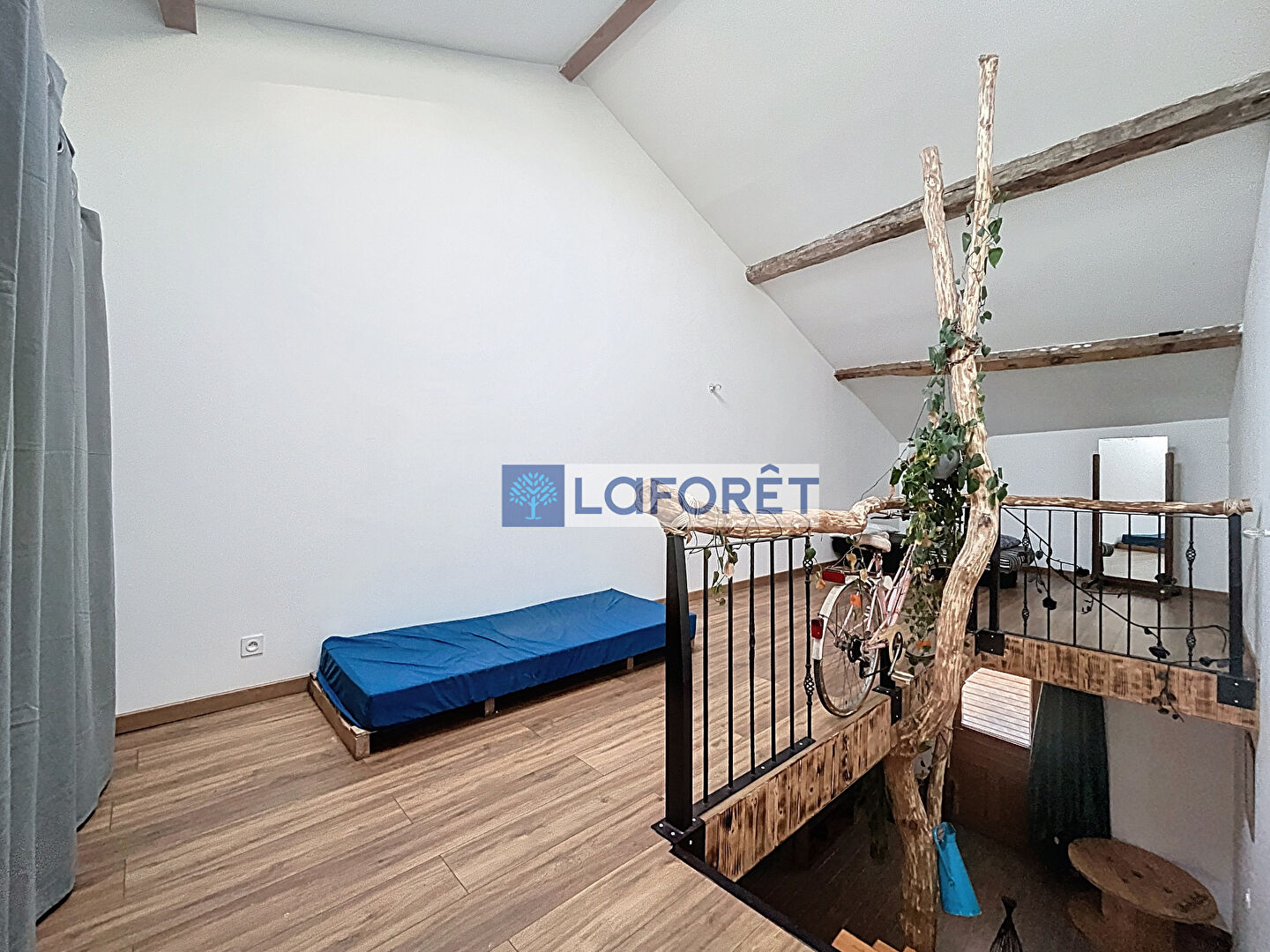 A l'étage, un grand palier et une chambre.