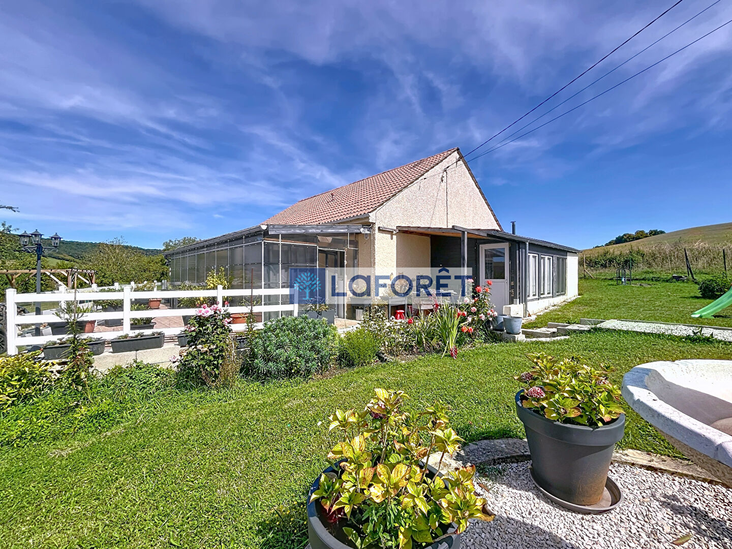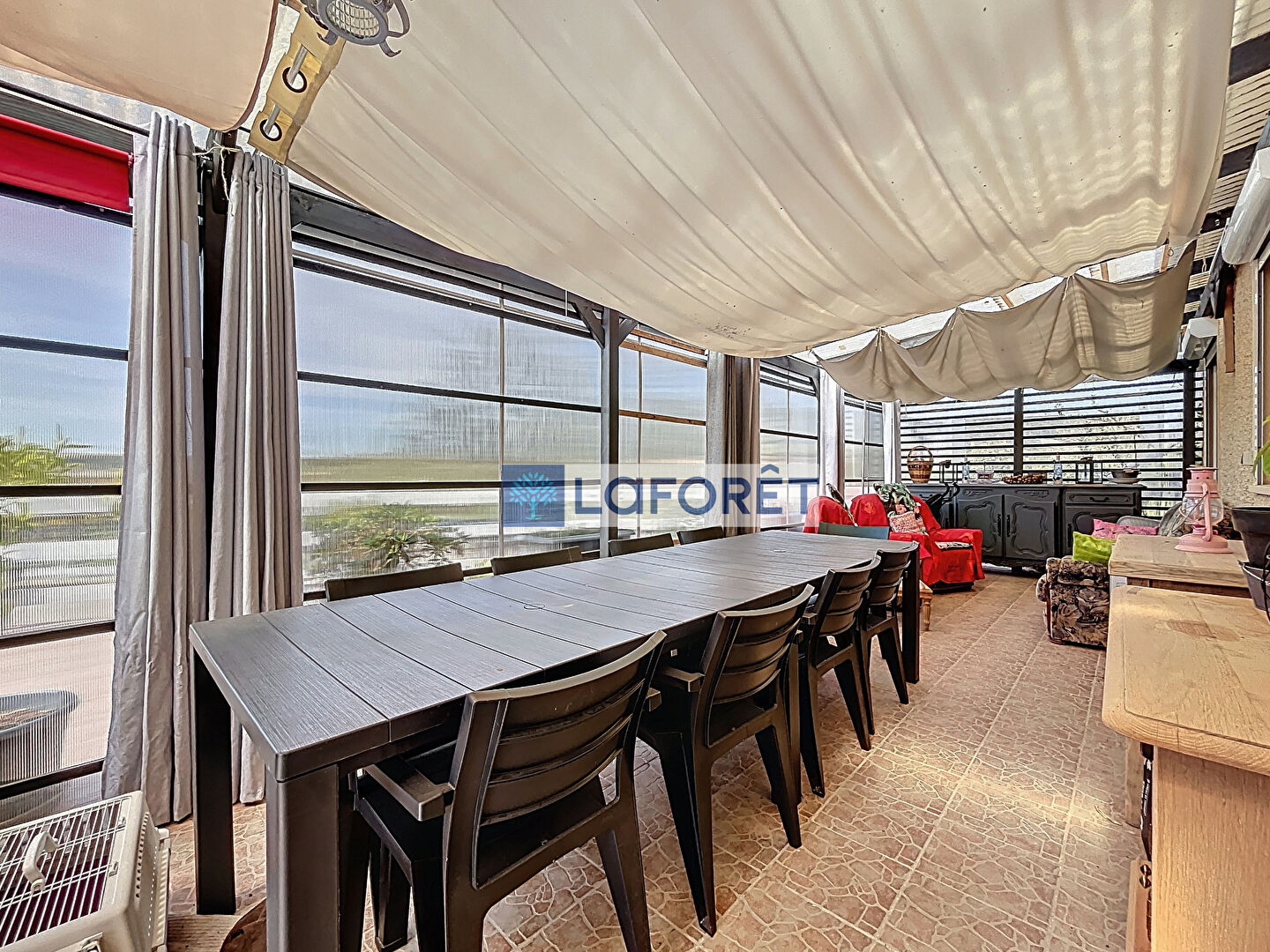 Une véranda et une cuisine d'été complète le bien.