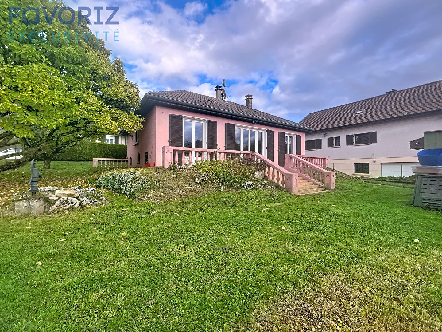 Chauffage centrale fuel et cheminée bois, menuiserie double vitrage PVC avec volets battants bois, porte entrée bois.