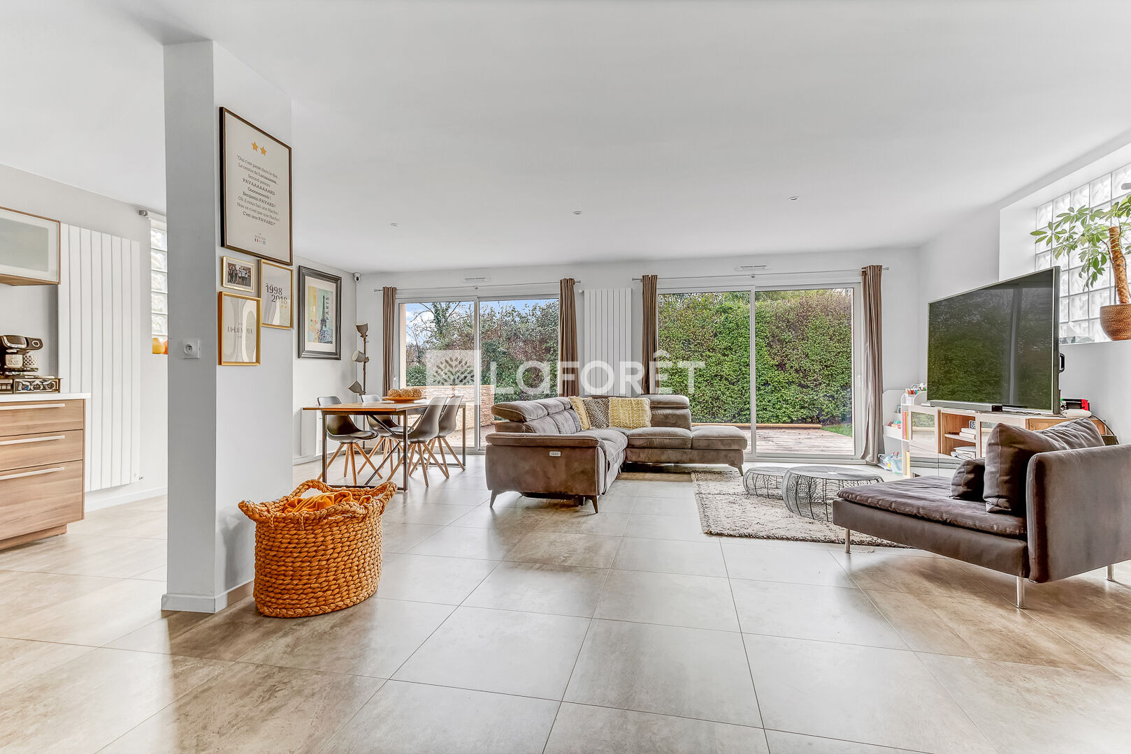 Le coeur de la maison : un séjour d'environ 50 m², baigné de lumière grâce à sa double exposition, avec accès direct sur le jardin. Parfait pour des repas nombreux, un coin jeux, un vrai salon, ou même un espace télétravail sans empiéter sur le reste.