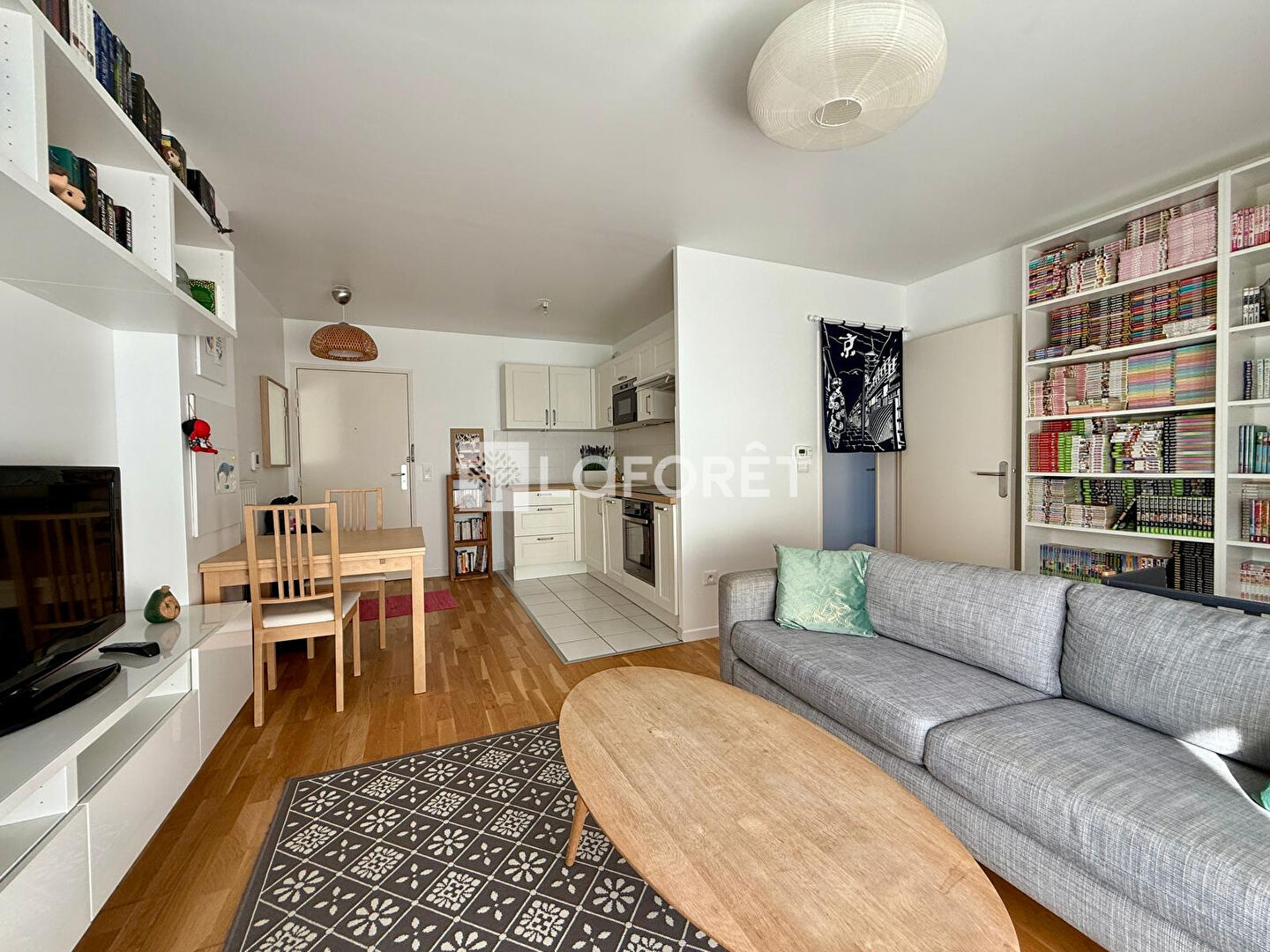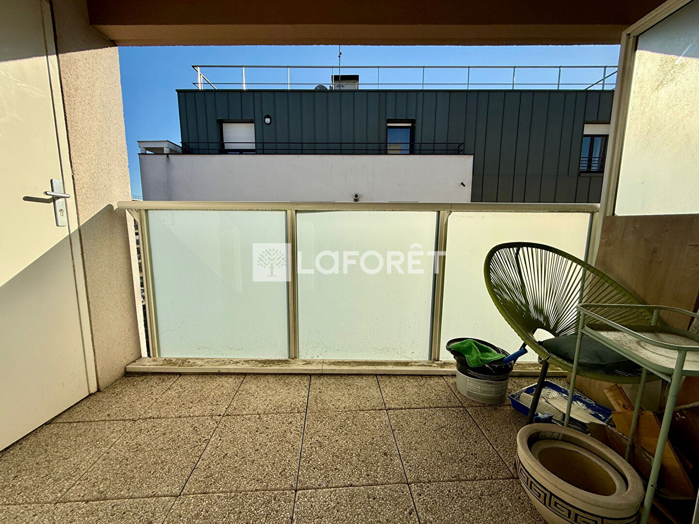 Vous trouverez une belle pièce de vie lumineuse de plus de 23m2 avec une belle cuisine équipée, donnant sur un balcon avec cellier intégré, idéal pour du rangement. Vous bénéficierez également d'une chambre spacieuse de presque 12m2, une salle d'eau et un wc séparé.