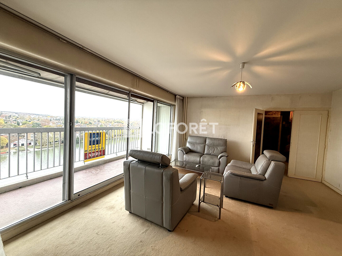Une entrée, un séjour double de 37m2 donnant accès à une loggia vue seine