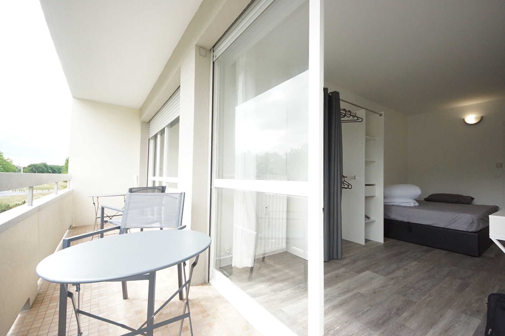 Un balcon privatif avec sa chaise et table basse pour pouvoir profiter du soleil. Exposition plein sud l'après-midi.