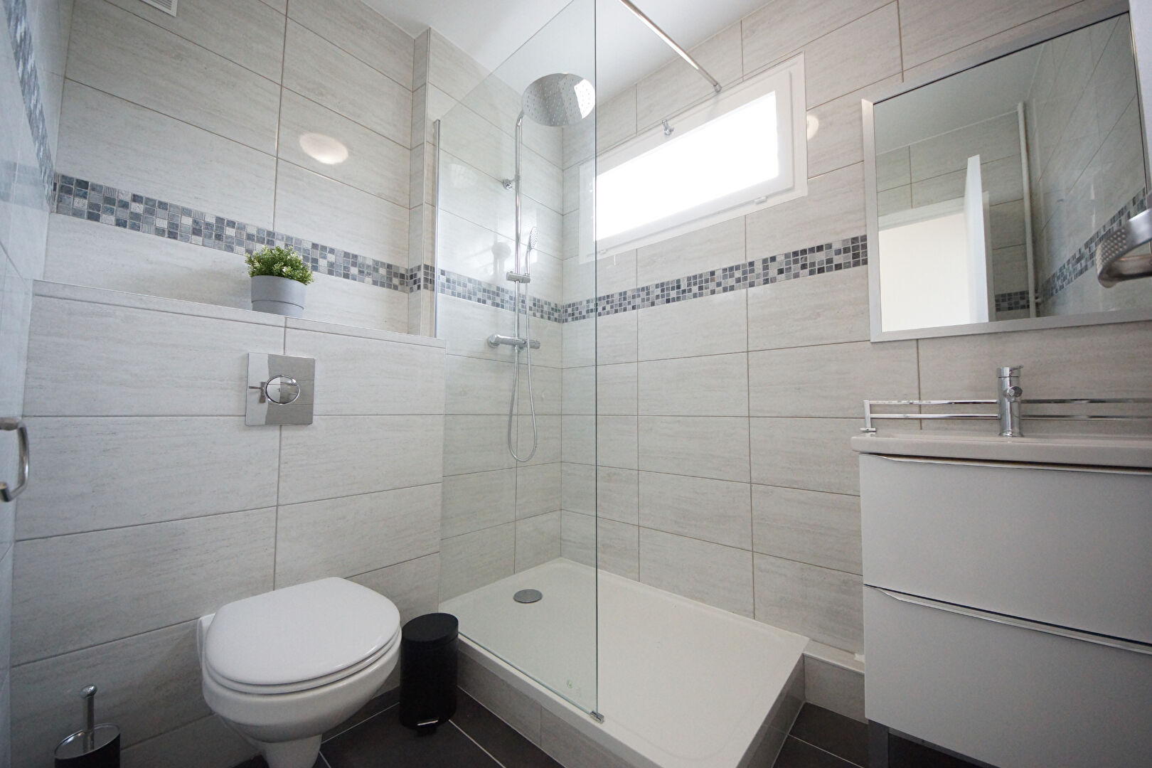 L'appartement comprend une salle de bain + une salle d'eau refait à neuf ainsi que 2 WC.