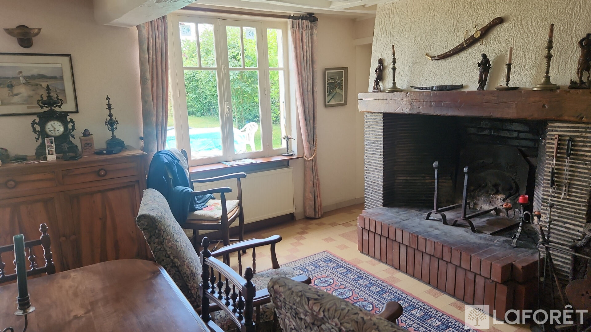 Salle à manger spacieuse de 21,35 m² agrémentée d'une imposante cheminée à foyer ouvert, idéale pour les moments conviviaux