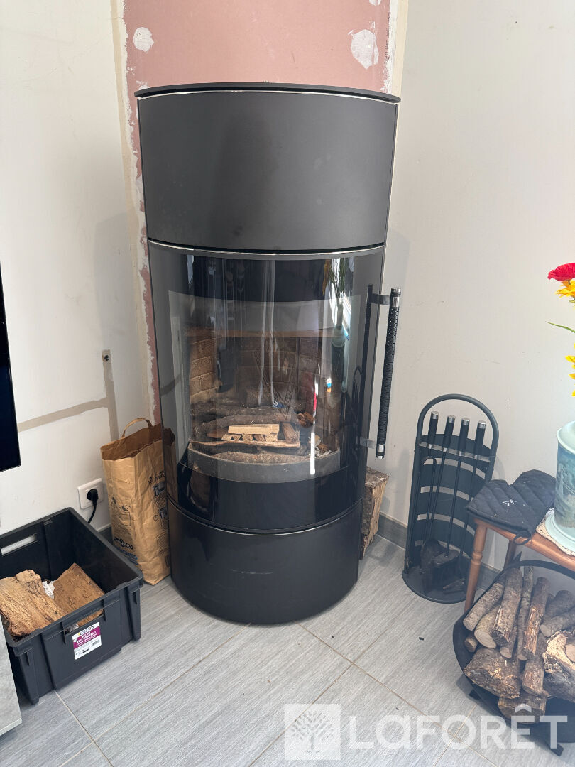 Cuisine aménagée ouverte sur beau séjour avec poêle à Bois , salle d'eau avec WC.