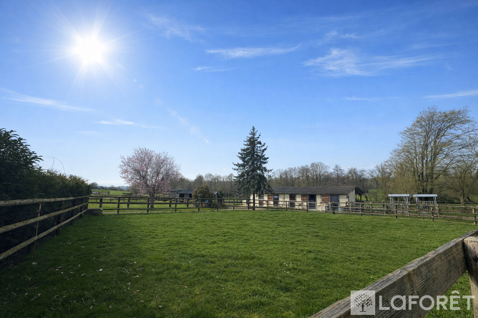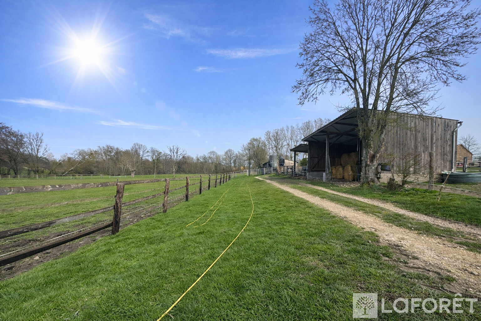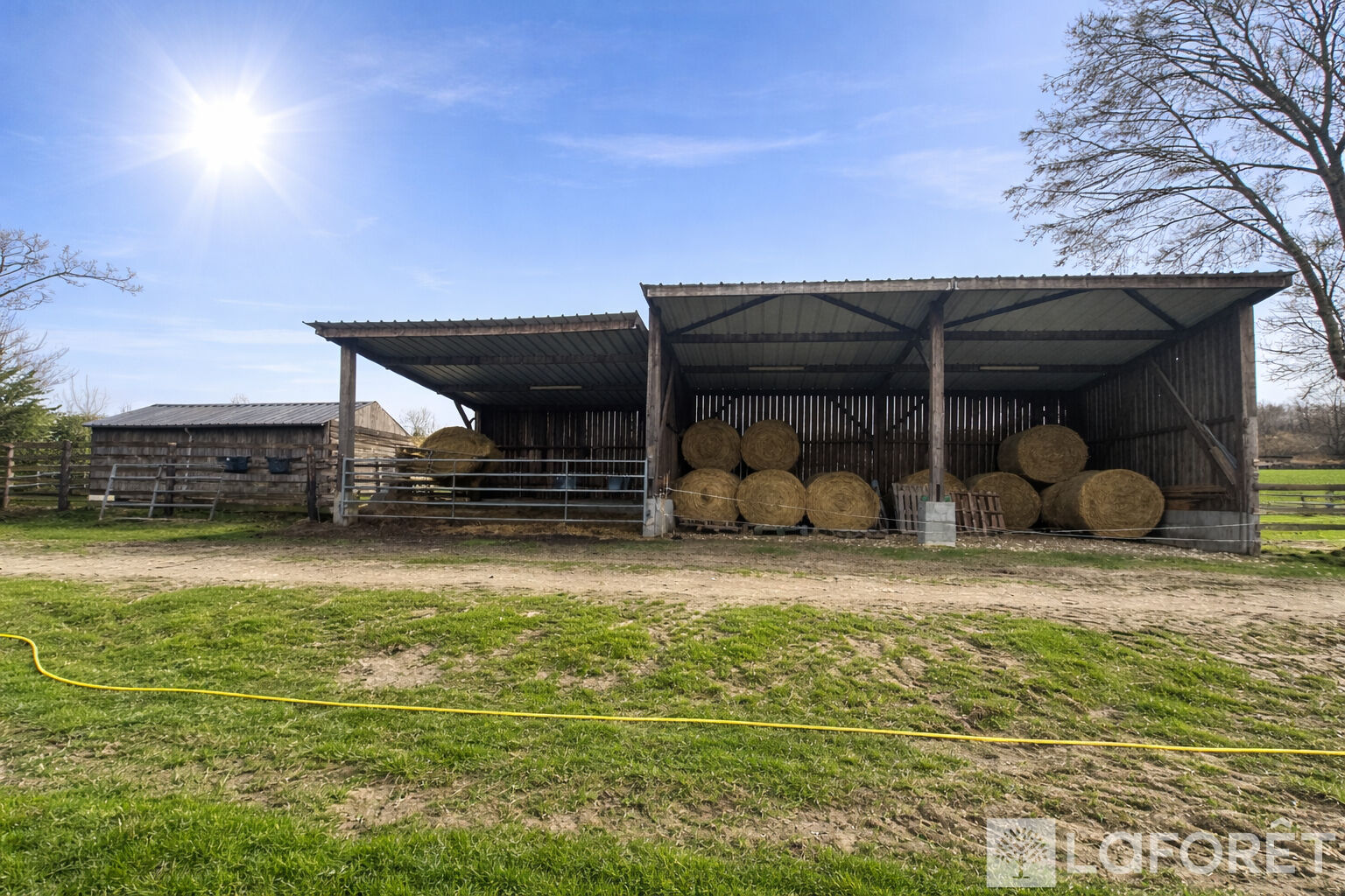 Dans un environnement calme et verdoyant, cette propriété offre 12 hectares 67 de prairies vallonnées, parfaitement adaptées à une activité professionnelle telle que l'élevage ou la pension de chevaux. Les installations comprennent 13 paddocks équipés d'abreuvoirs automatiques et clôturés par des lisses en bois, ainsi que 9 abris, 6 boxes de 3,50 m par 3,50 m et 2 hangars permettant le stockage de matériel ou de fourrage.