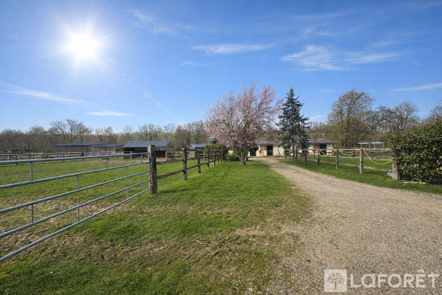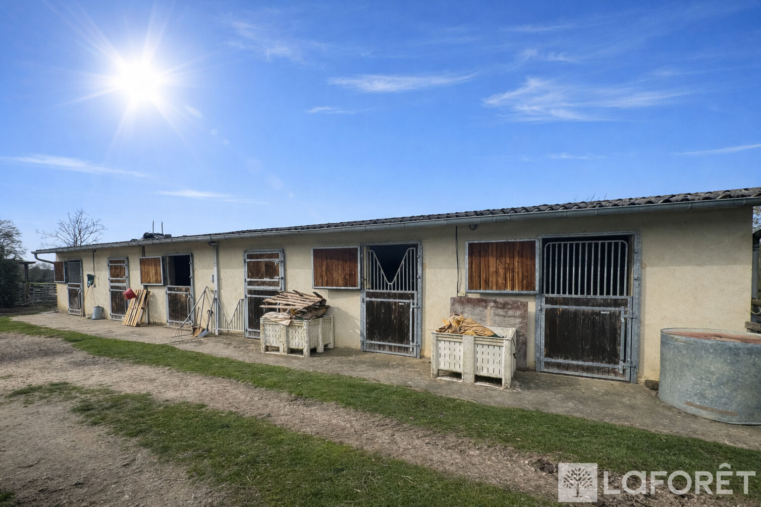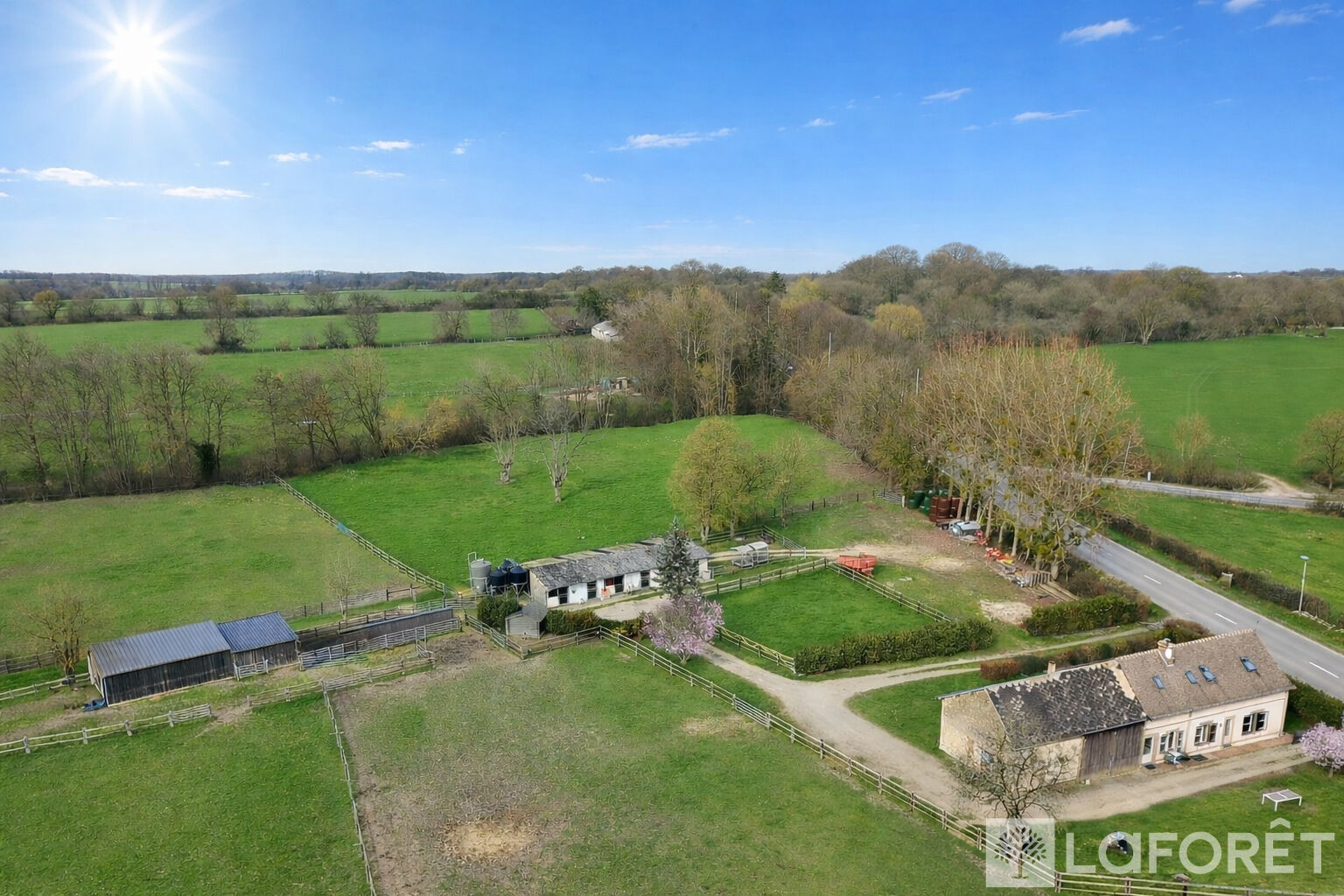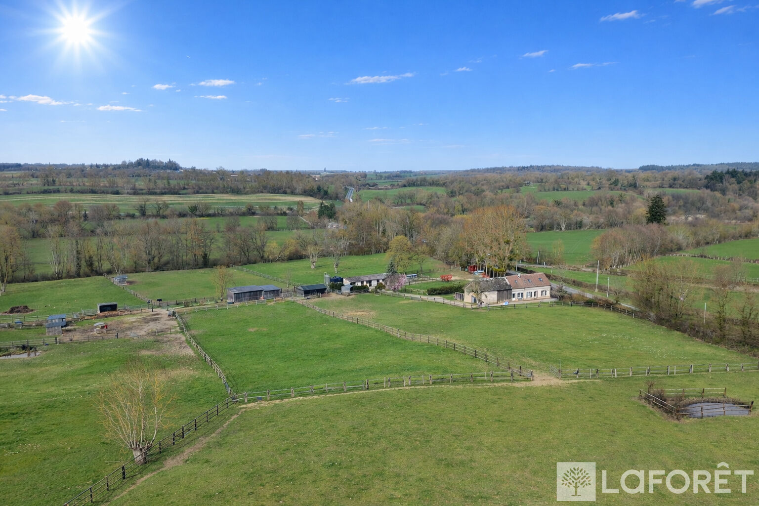 Dans un environnement calme et verdoyant, cette propriété offre 12 hectares 67 de prairies vallonnées, parfaitement adaptées à une activité professionnelle telle que l'élevage ou la pension de chevaux. Les installations comprennent 13 paddocks équipés d'abreuvoirs automatiques et clôturés par des lisses en bois, ainsi que 9 abris, 6 boxes de 3,50 m par 3,50 m et 2 hangars permettant le stockage de matériel ou de fourrage.