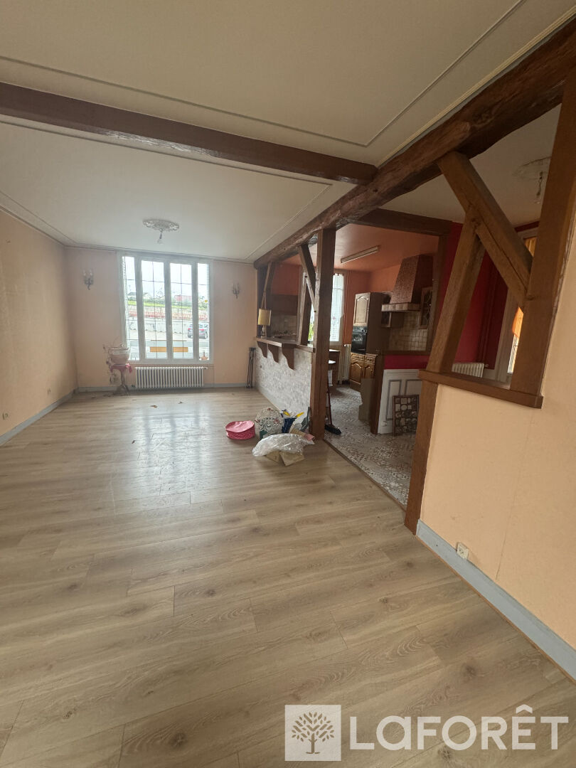 Au rez-de-chaussée, vous découvrirez un salon séjour lumineux, une cuisine ouverte en bois, un WC, ainsi qu'un accès direct au sous-sol.