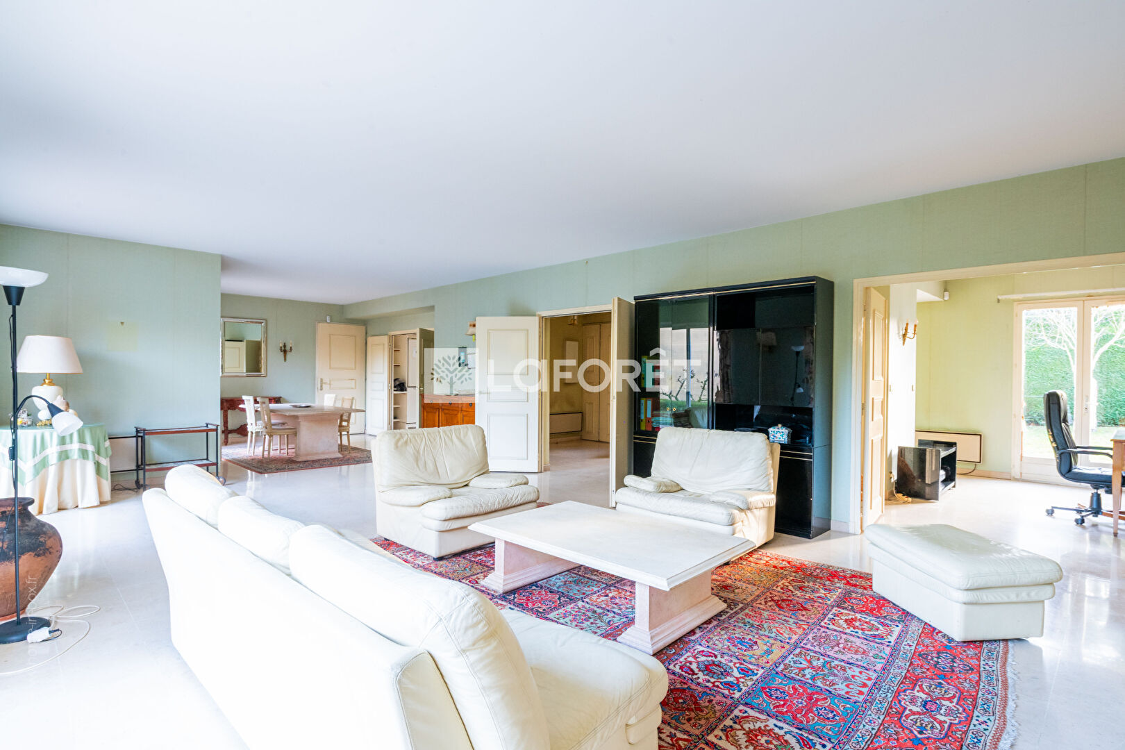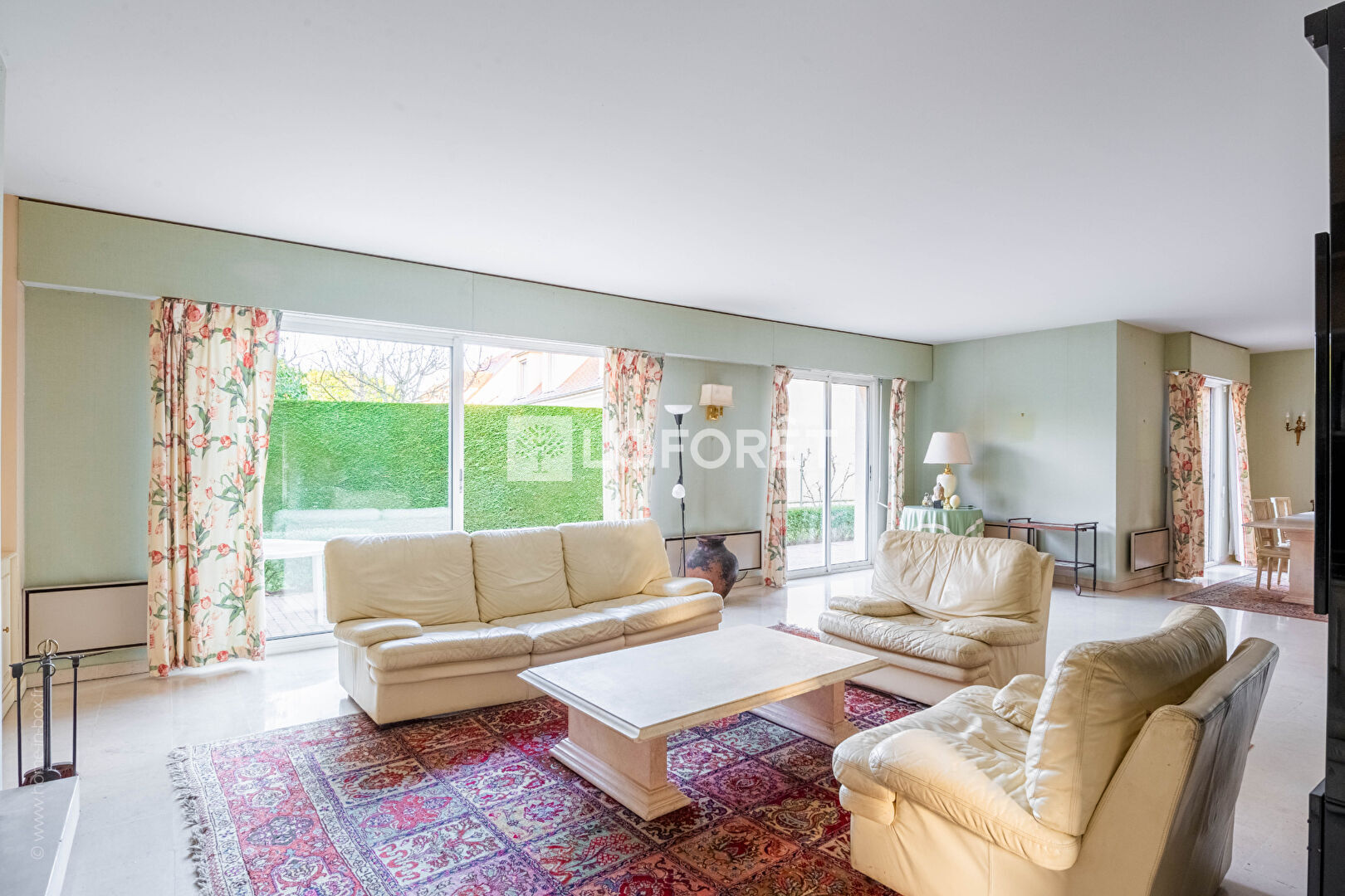 Un séjour de 46 m² avec cheminée, s'ouvrant par de larges baies vitrées sur une terrasse exposée Ouest et un jardin sans vis-à-vis.