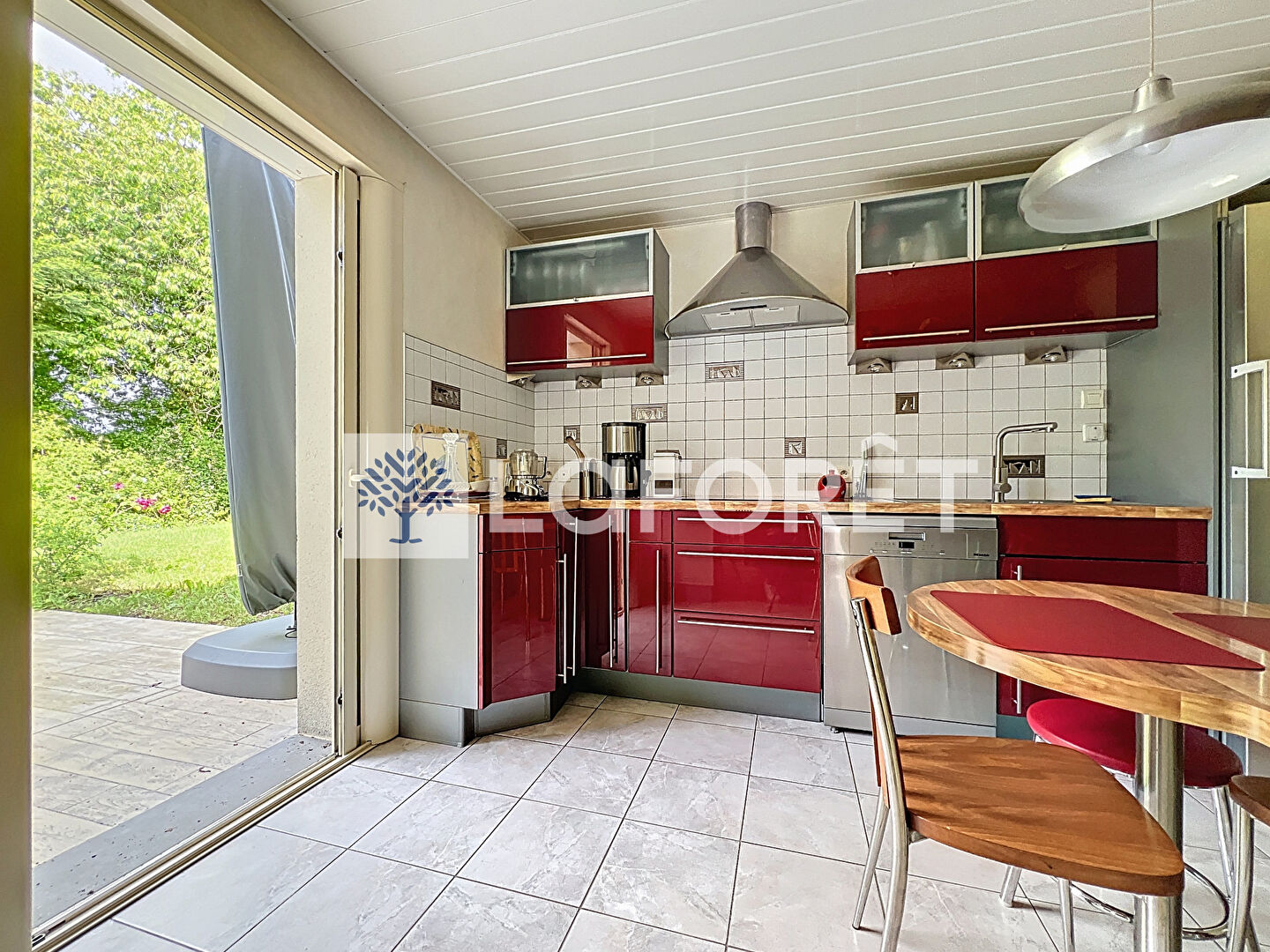 Côté confort : chauffage au sol par pompe à chaleur, 12 panneaux photovoltaïques (revente), garage avec portail sectionnelle motorisé, vidéosurveillance et alarme.