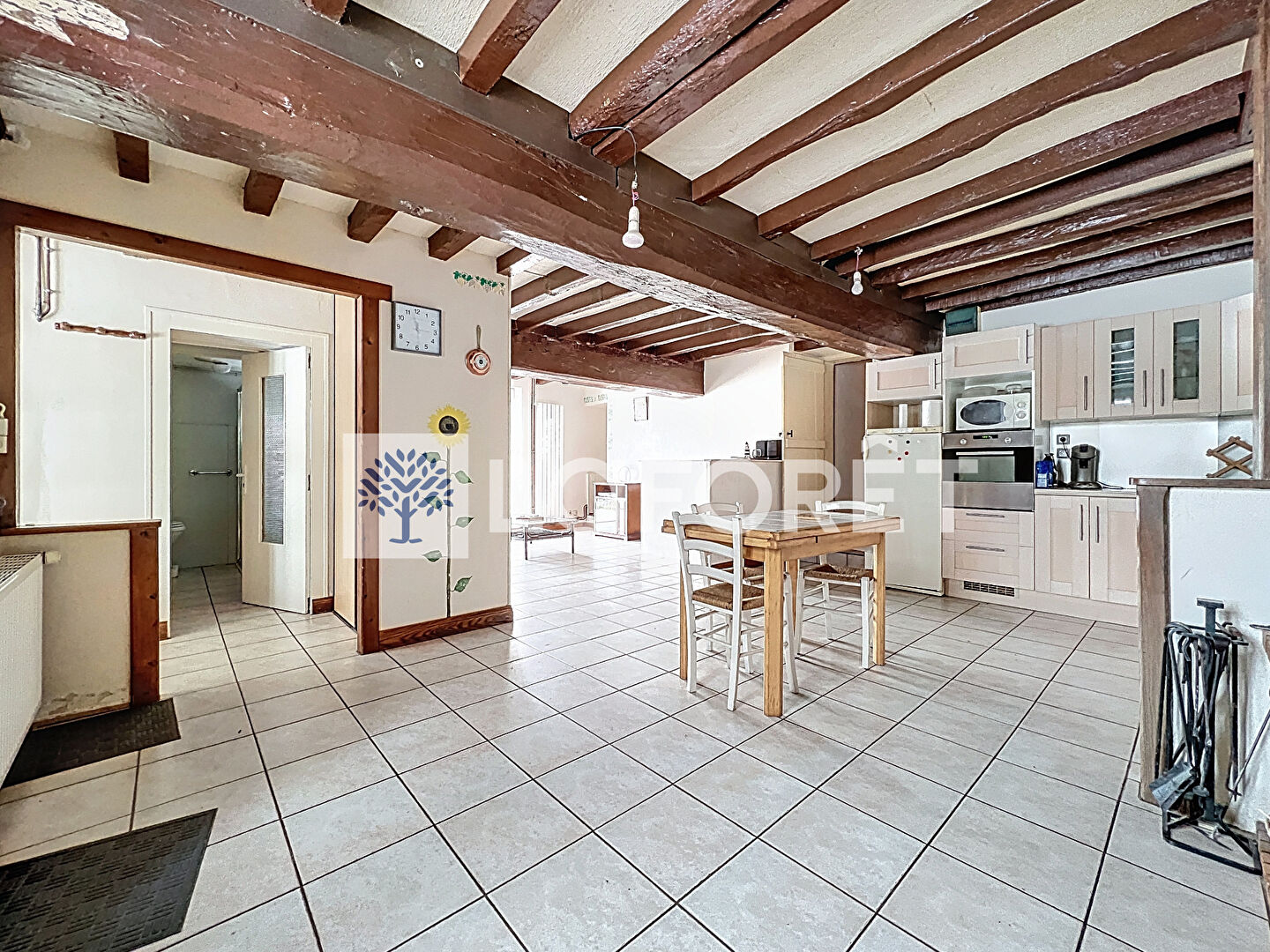 - Pièce à vivre avec cuisine 30 m2, salle d'eau et WC au rez-de-chaussée.