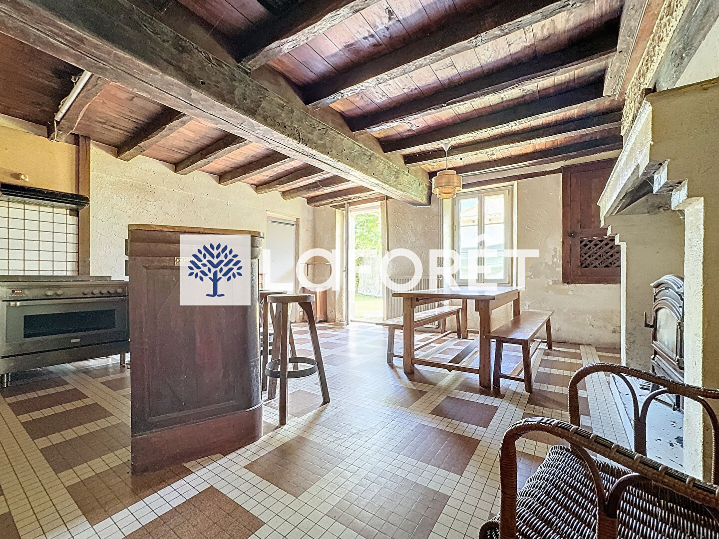 Elle se compose, au rez-de-chaussée, d'une cuisine ouverte sur un séjour avec poêle à bois, un patio donnant sur le jardin, un grand salon avec cheminée à foyer ouvert et un bureau.