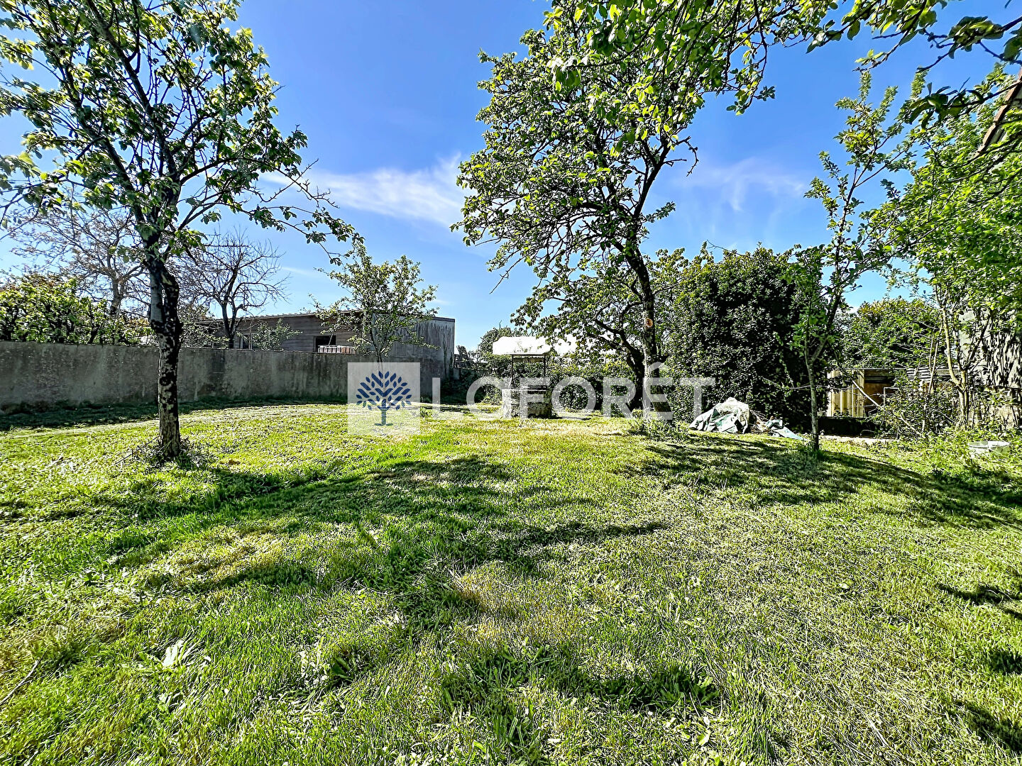 Un terrain clos et arboré 910 m2 avec un puits, un cabanon et une dépendance atelier.