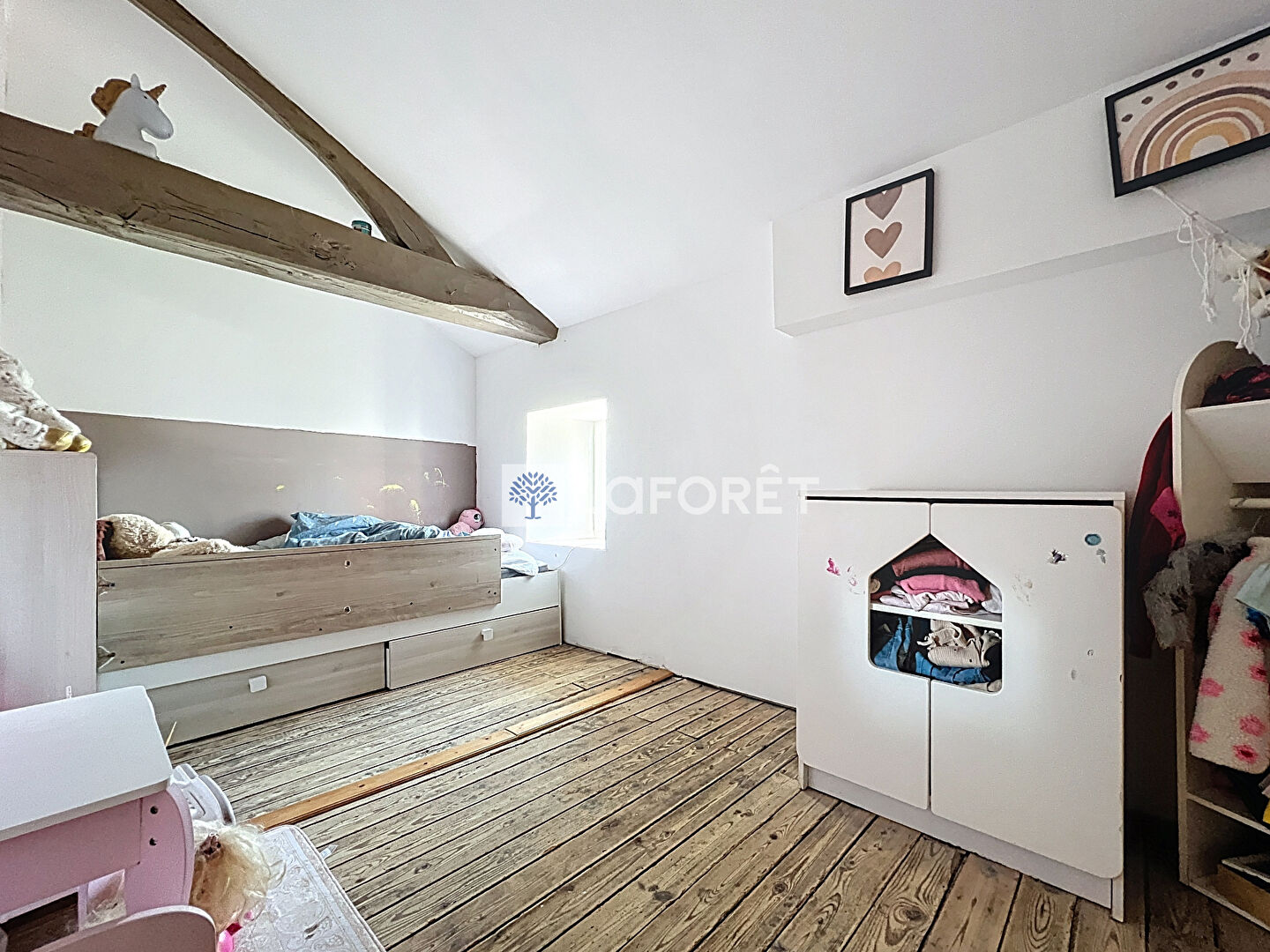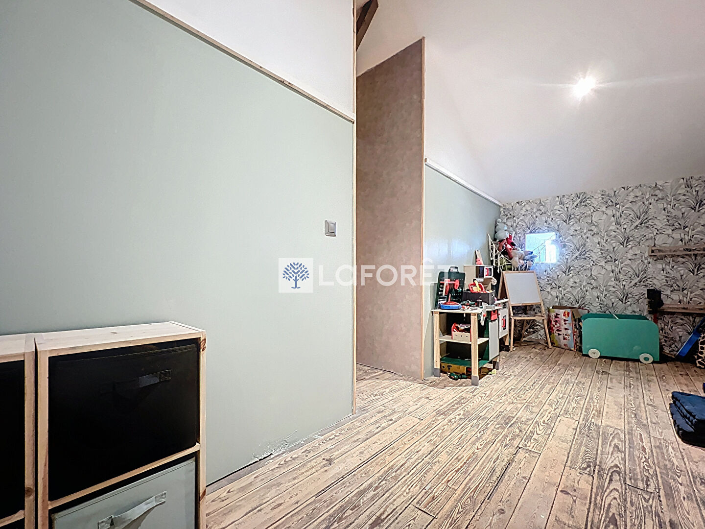 A l'étage, un palier aménagé en espace bureau dessert quatre chambres , une salle de jeux, ainsi qu'un dernier espace prévu pour l'aménagement d'un coin douche et WC.