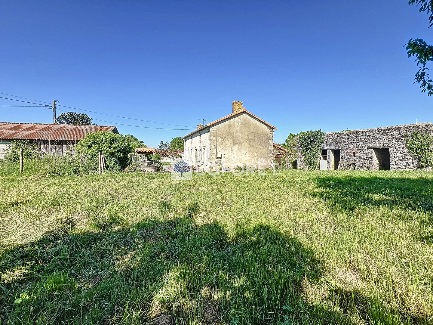A l'extérieur, vous profiterez d'un terrain arboré comprenant un garage, une dépendance, ainsi qu'un puits relié à la maison, véritable atout pour l'arrosage ou un usage domestique.