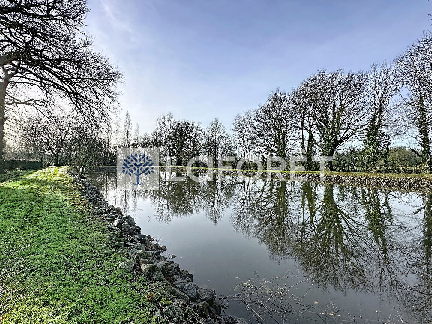 En pleine campagne, à 3 minutes du centre bourg de Largeasse, terrain de loisirs de 3815 m2 dont étang déclaré d'environ 1100 m2 empierré et parcelle boisé de 750 m2 -