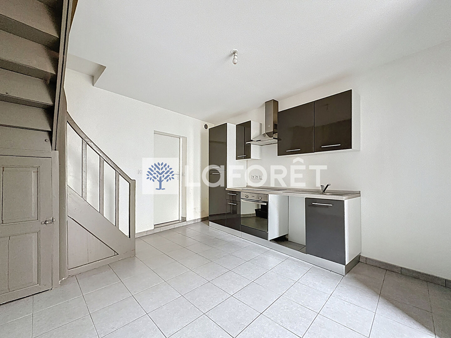 Maison à étage comprenant au rez-de-chaussée : une cuisine aménagée et équipée (four, plaque de cuisson, hotte, réfrigérateur), un salon / salle à manger lumineux, une buanderie et un WC indépendant.