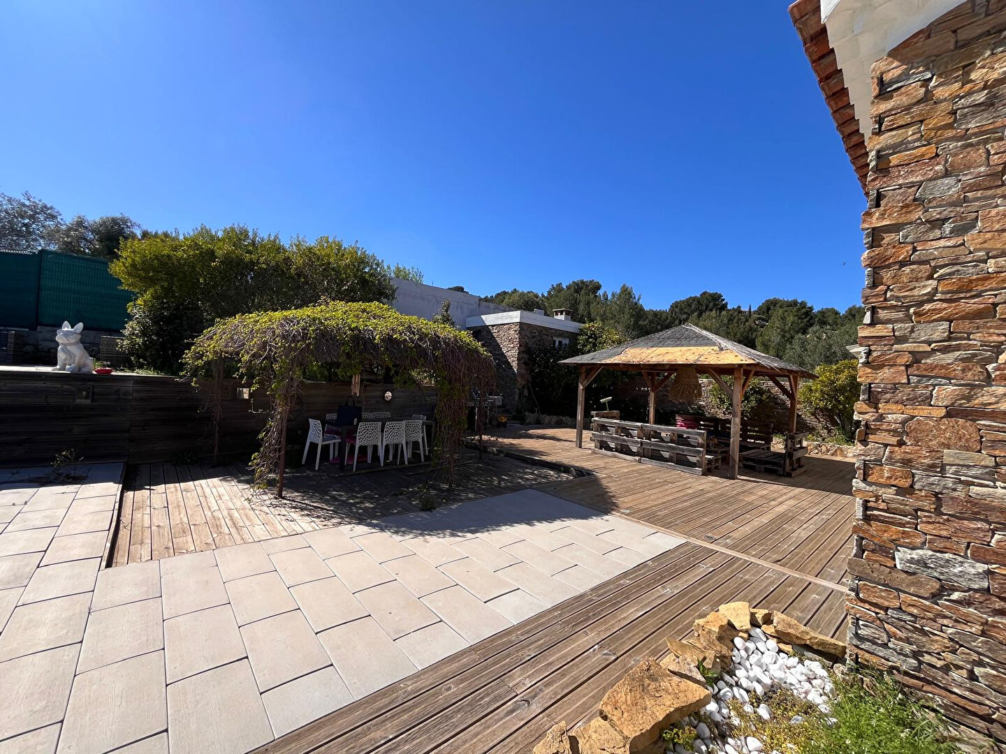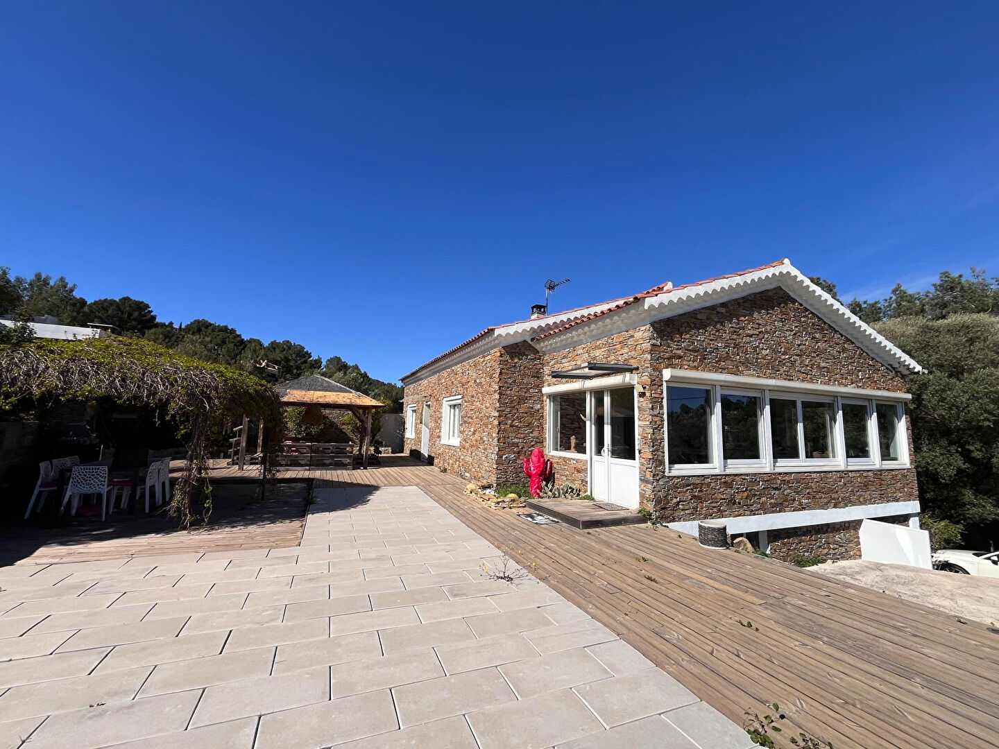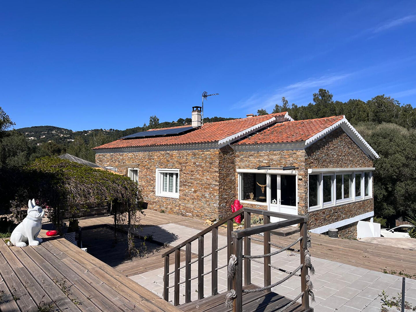 À seulement 3 minutes en voiture des commodités et 5 minutes du port, avec un arrêt de bus scolaire à deux pas, vous profiterez du calme absolu. L'assainissement est récent grâce à une station d'épuration, et aucun travaux n'est à prévoir. La maison, orientée plein sud avec des expositions est et ouest, est autonome grâce à ses panneaux photovoltaïques de 6 kW et son chauffe-eau thermodynamique, avec un rachat du surplus par EDF (2 300 euros en 2025).
