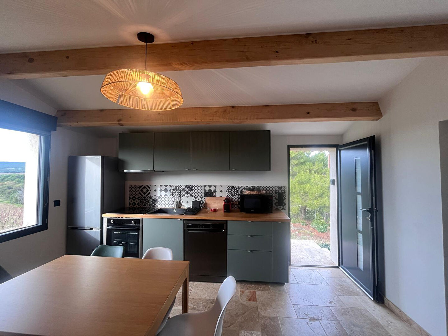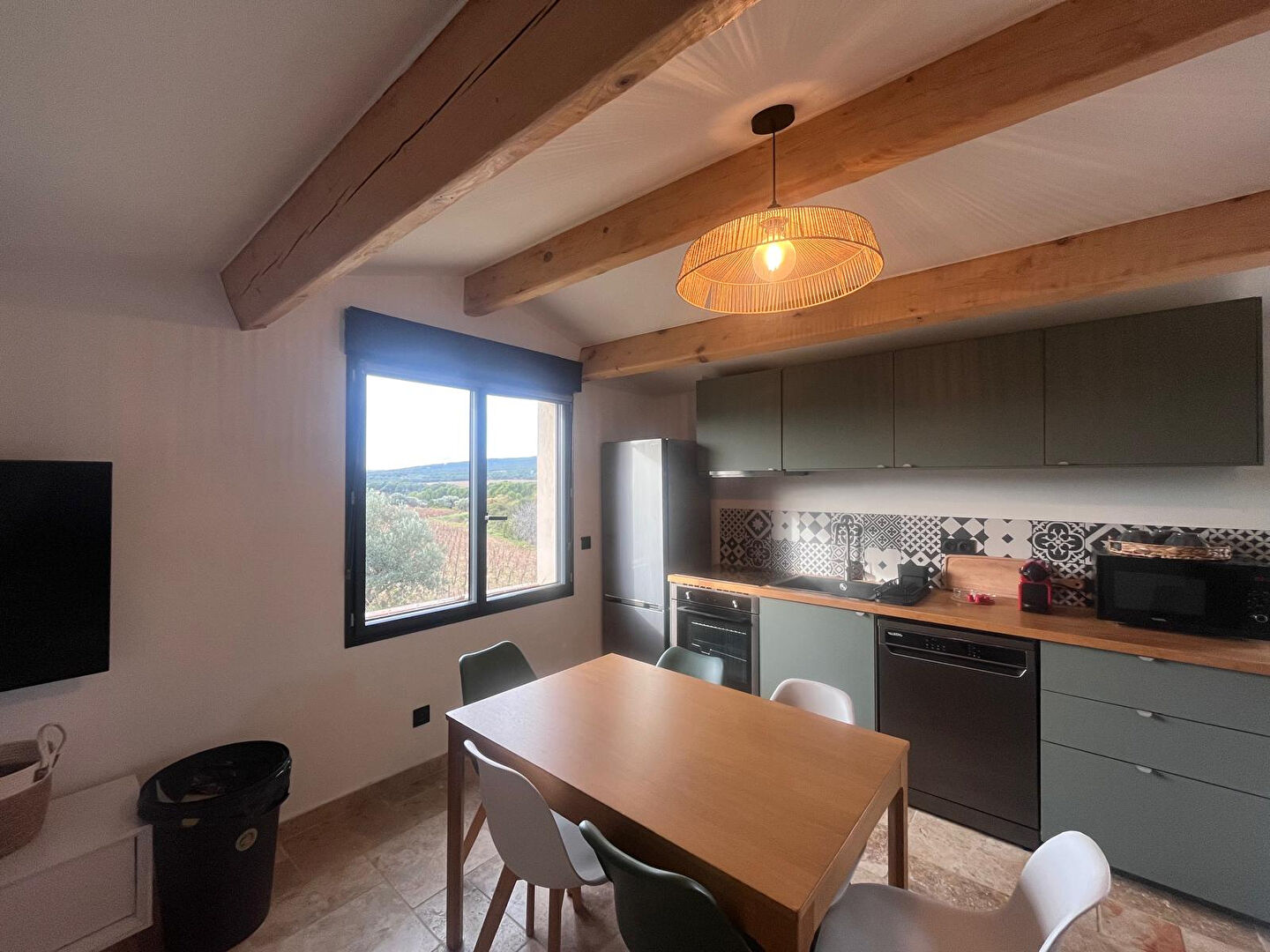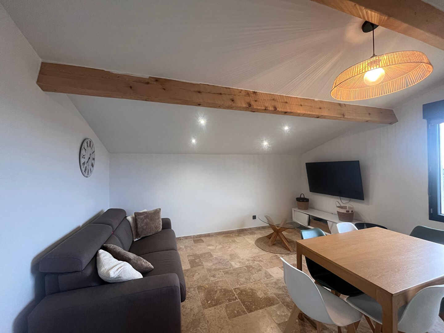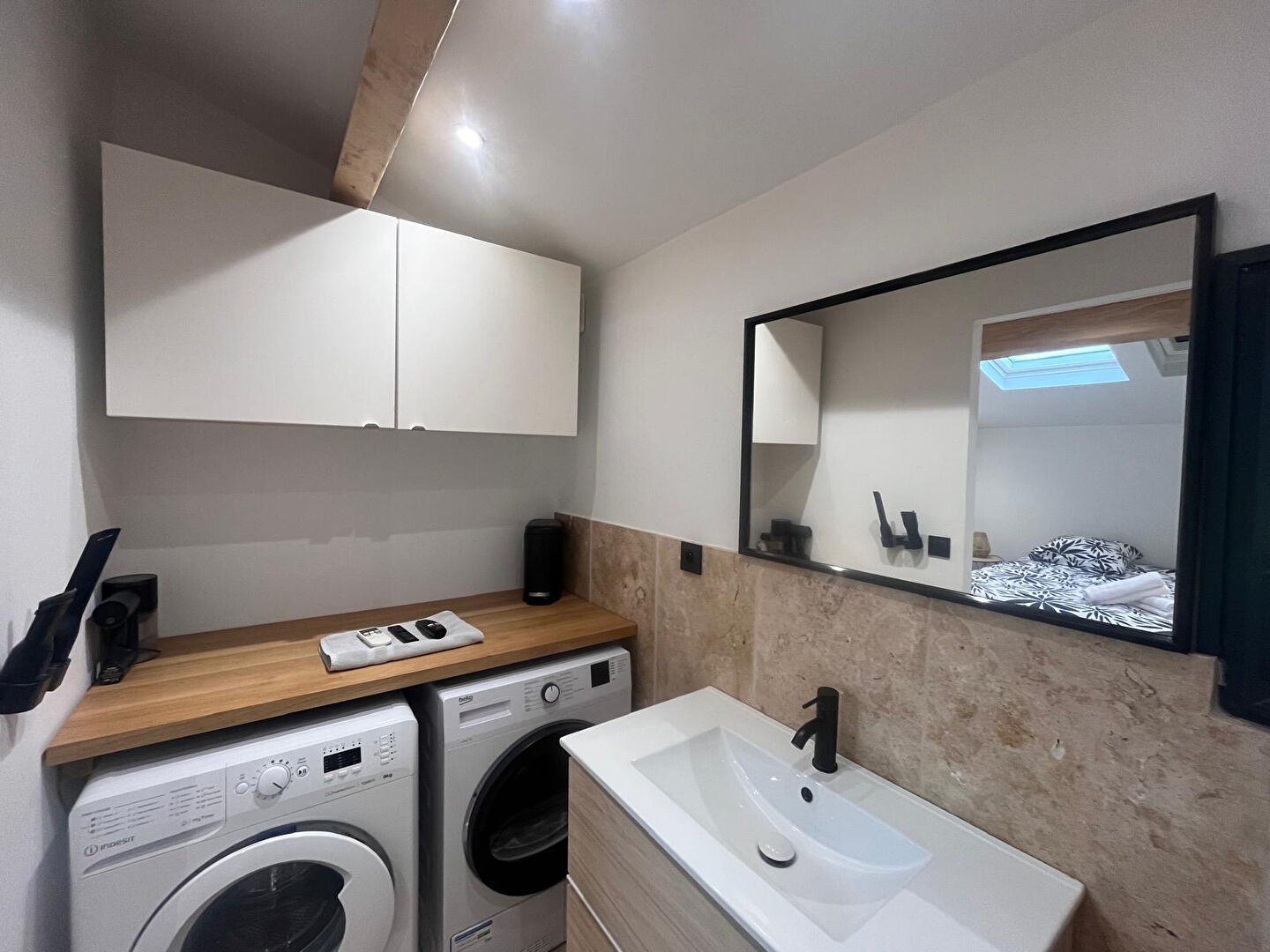 grand séjour avec cuisine équipée et aménager une chambre salle d'eau WC
