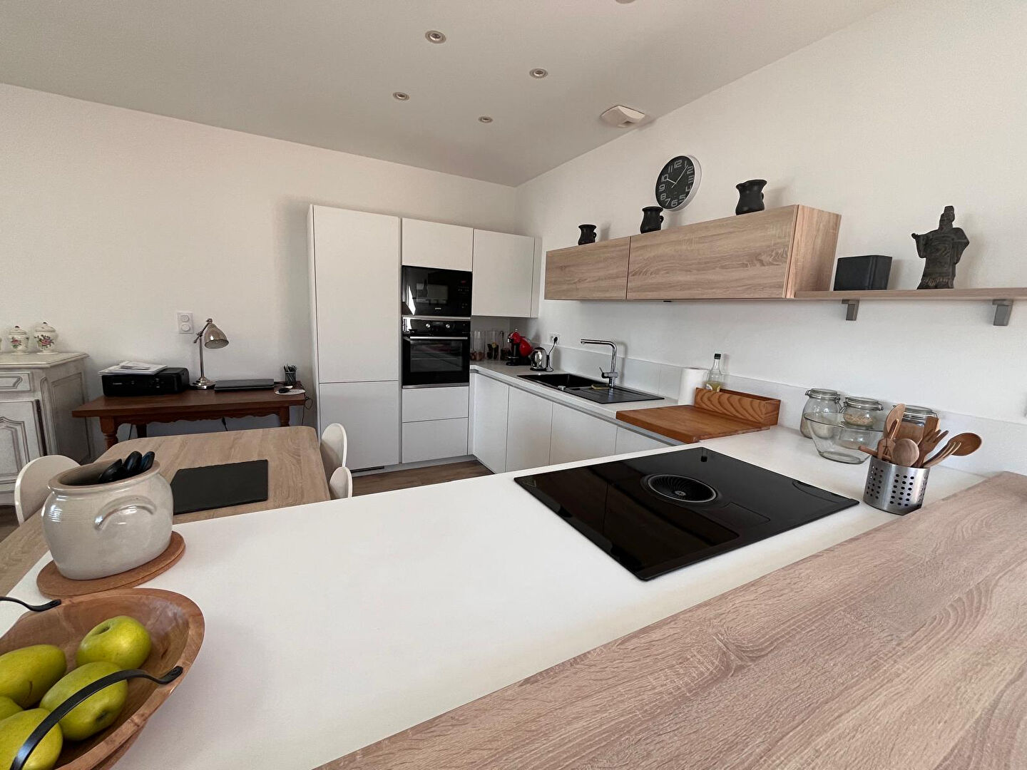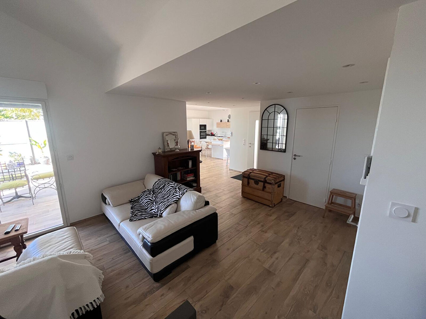 Le salon s'ouvre sur une vaste terrasse, un lieu parfait pour savourer des moments de détente en extérieur, tout en profitant d'un cadre idyllique. Cette villa s'étend sur un terrain de 580 m², piscinable selon vos envies, vous permettant de créer votre propre oasis personnelle.