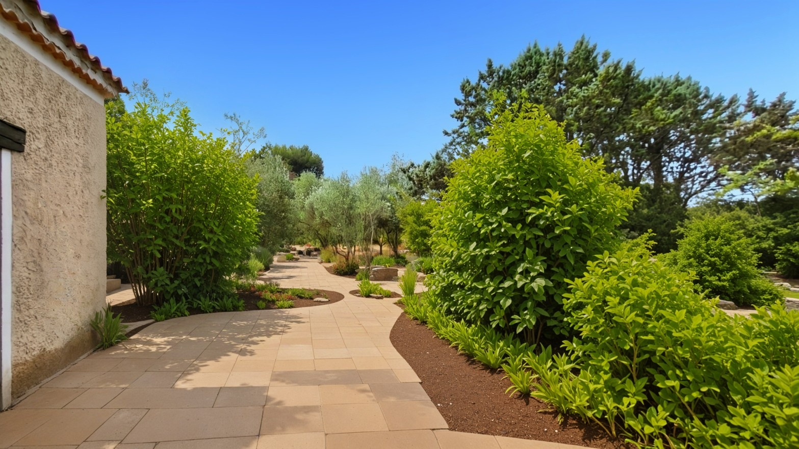 Le terrain de 5300 m² est plat, entièrement clôturé et magnifiquement paysagé. Vous y trouverez des arbres centenaires, des oliviers et des vignes, créant un cadre idyllique pour la vie en plein air. De plus, la propriété est idéalement située, à proximité de toutes les commodités accessibles à pied ou en voiture.