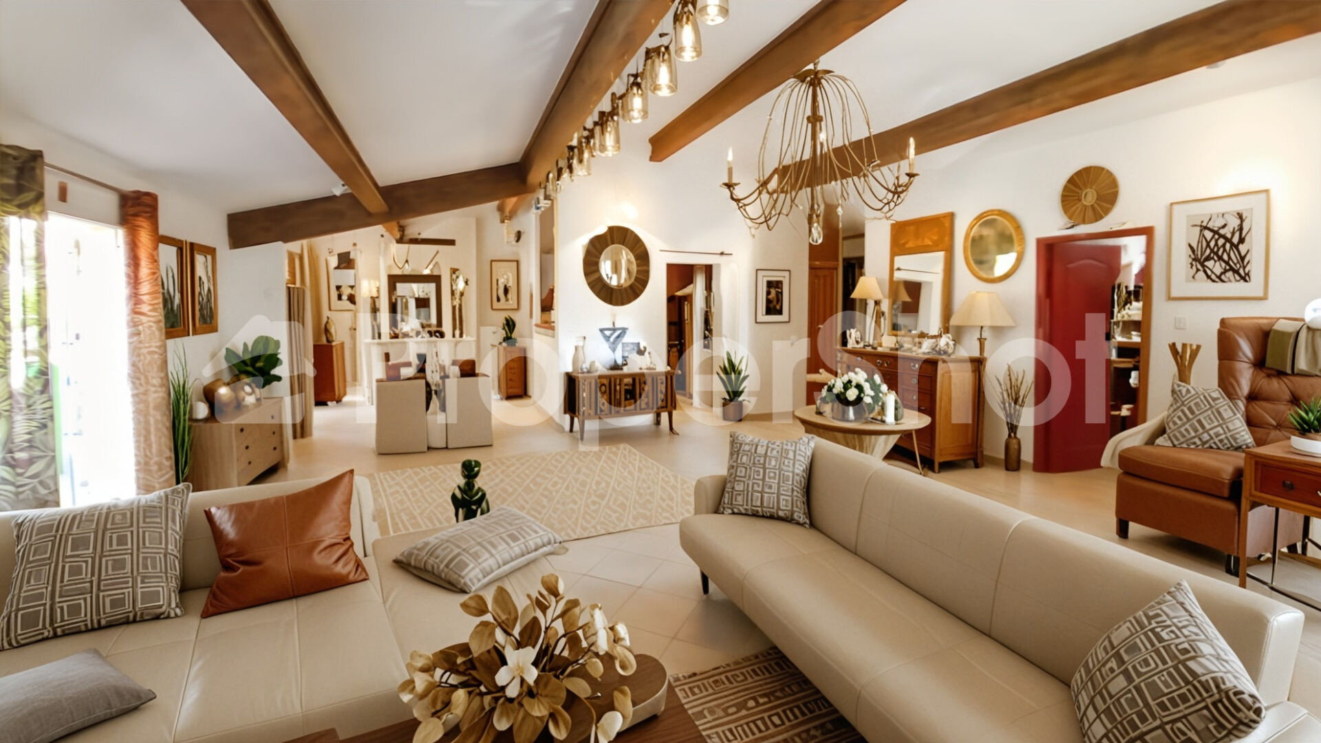 - Grand séjour lumineux donnant sur une agréable terrasse ombragée, orientée plein sud