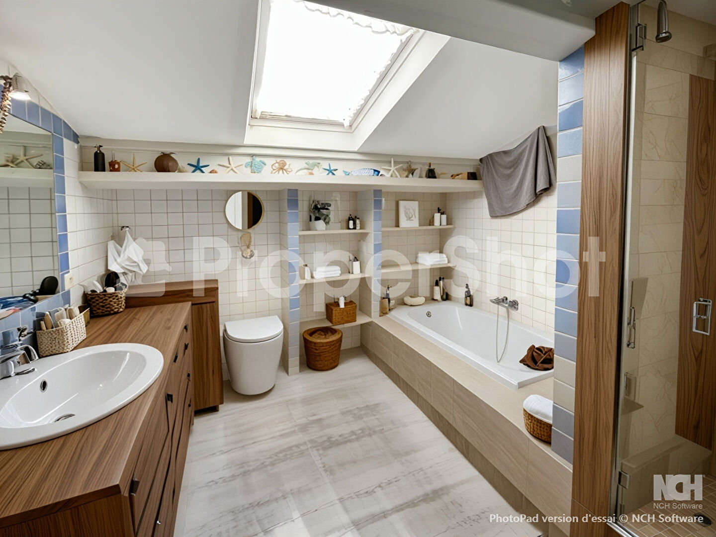 - À l'étage, profitez d'un grand séjour de plus de 50 m² donnant sur une grande et belle terrasse ,Une cuisine semi-ouverte et de deux grandes chambres, accompagnées d'une belle salle de bain équipée d'une baignoire et d'une douche, ainsi qu'un WC individuel