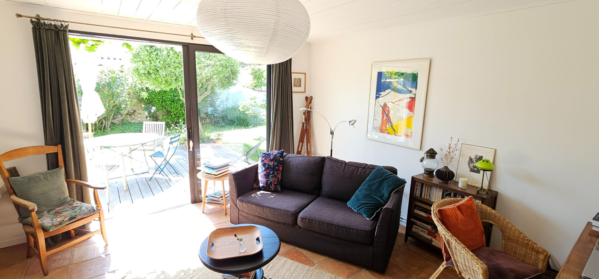 Imaginez-vous profiter d'une belle pièce de vie baignée de lumière, s'ouvrant généreusement sur une terrasse ensoleillée, promesse de moments de détente inoubliables. Un jardin paysagé invite à la quiétude et à la douceur de vivre rétaise.