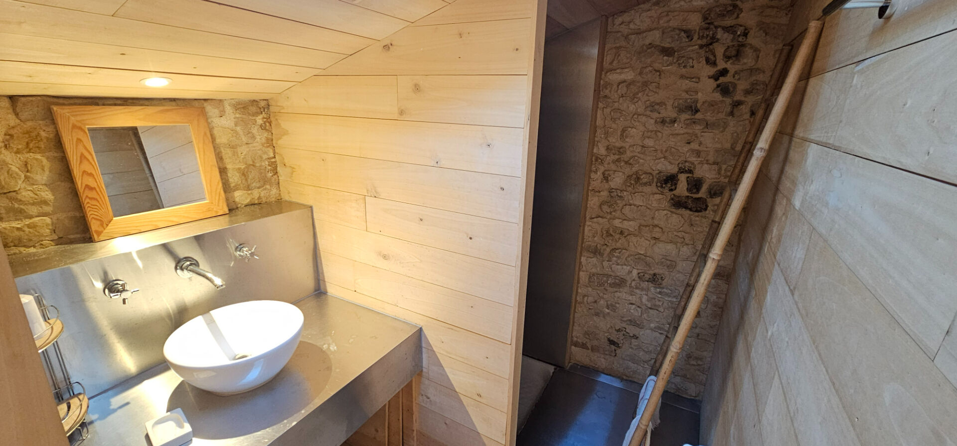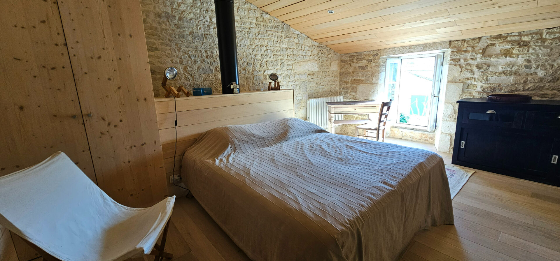 Le mariage harmonieux de la pierre et du bois, témoignant de l'authenticité de la maison.