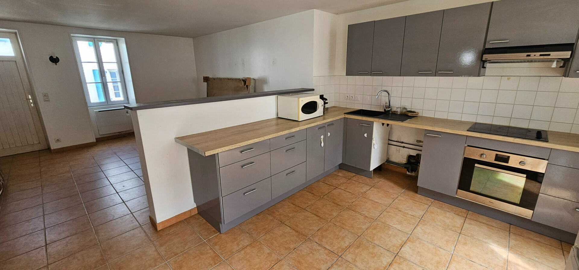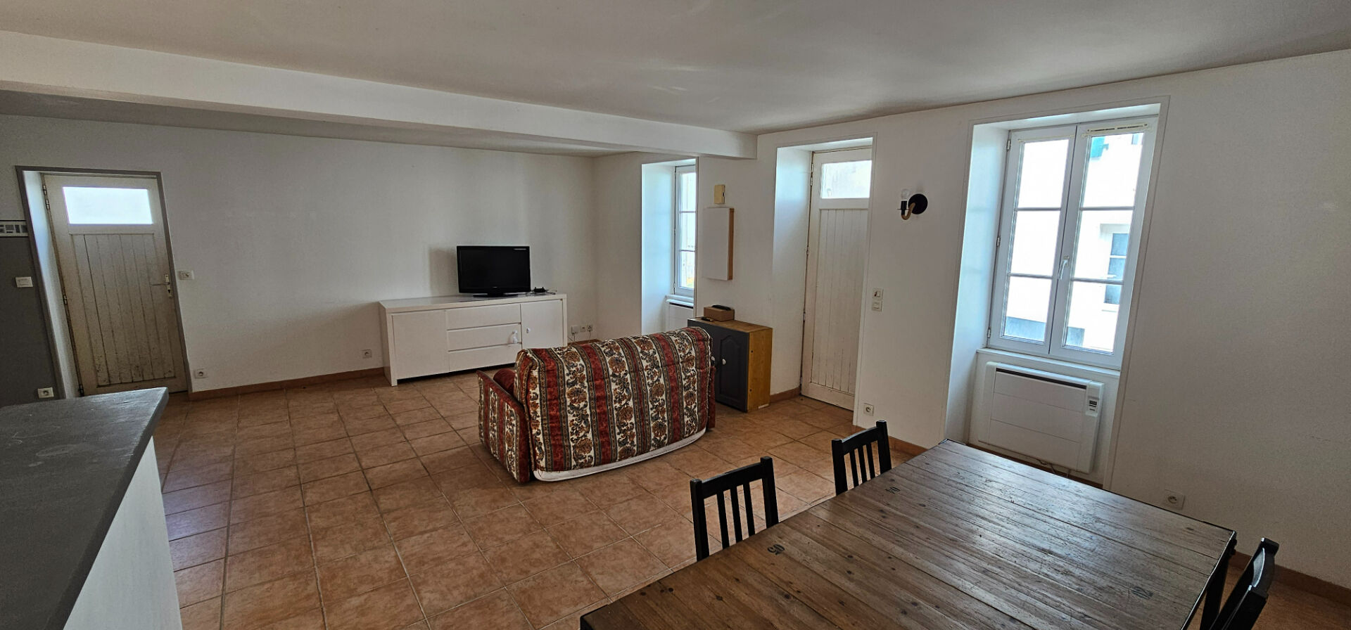Elle se compose d'une grande pièce de vie de 50m² ouverte sur une cour sans vis à vis.