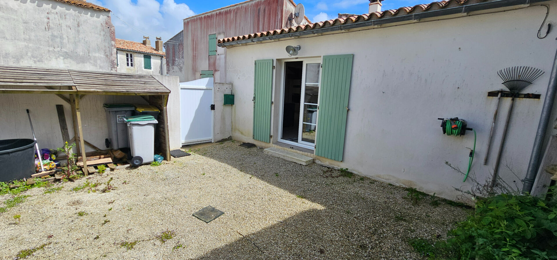 Le charme extérieur n'est pas en reste, puisque le bien bénéficie de trois cours privatives, offrant des espaces multiples et intimes sans vis-à-vis pour profiter pleinement du climat rhétais.