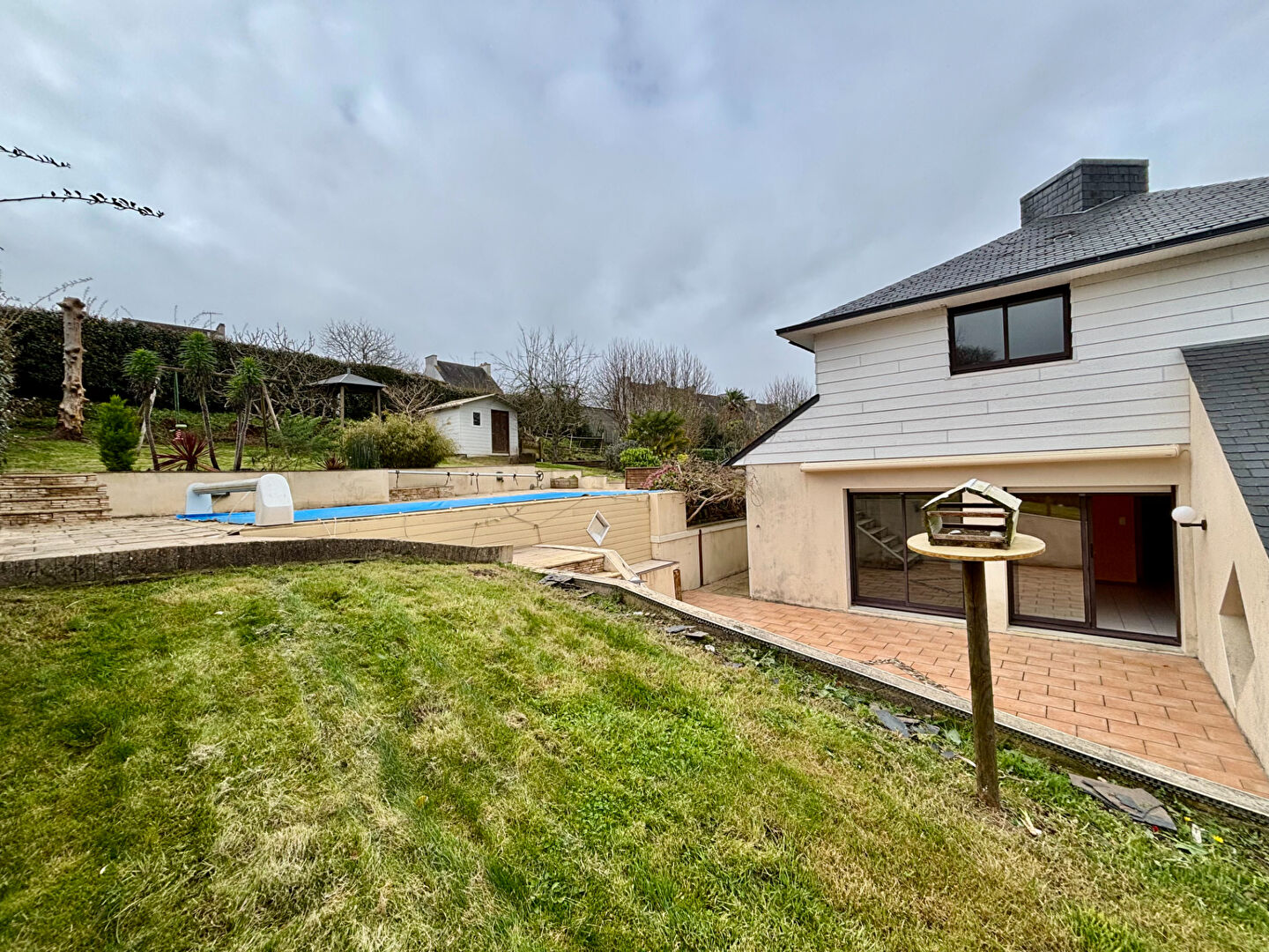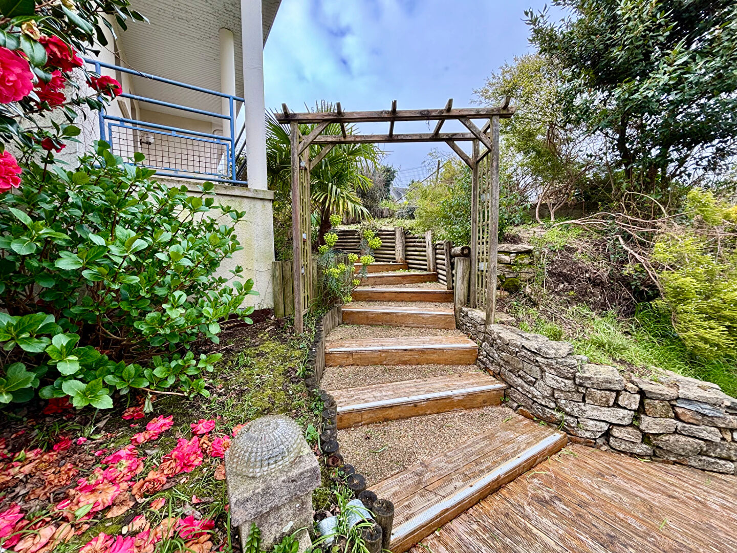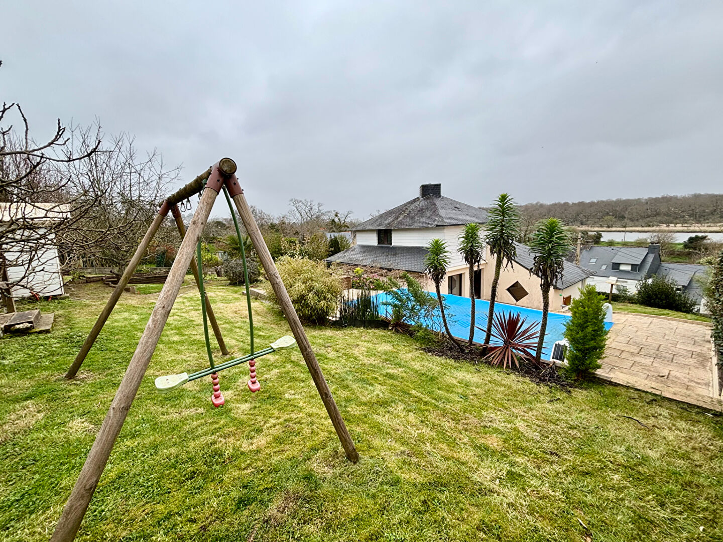 Vous pourrez profiter d'une vue sur l'Odet dans cet écrin de verdure de plus de 1.000 m², paysagé et arboré avec goût et vous détendre au bord de la piscine.