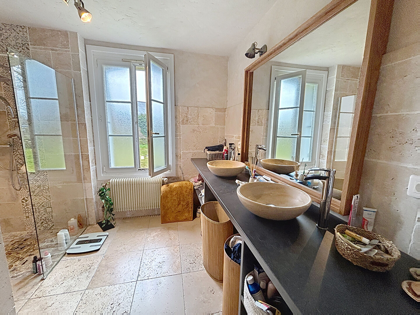 La maison d'habitation vous séduira par ses volumes, sa luminosité et son atmosphère cosy. Les pierres apparentes, les matériaux nobles et les finitions soignées créent un lieu de vie unique. Vous disposerez de 4 chambres dont une en rez-de-chaussée, un séjour triple avec insert, une cuisine aménagée et équipée ainsi qu'une terrasse de 35 m² et un sous-sol complet.