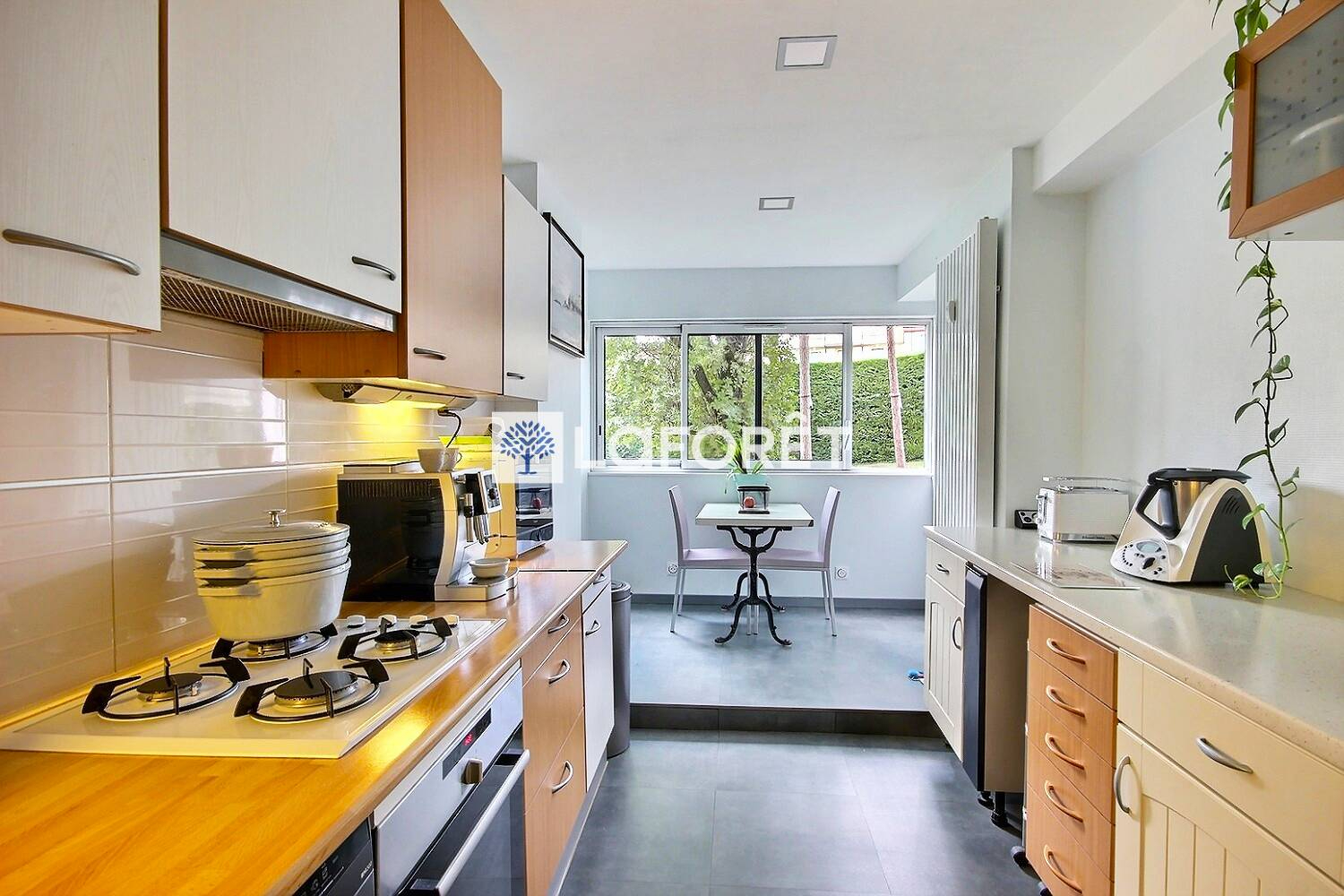 Il offre une spacieuse pièce de vie baignée de lumière grâce à ses larges baies vitrées donnant sur le parc de la résidence, ainsi qu'une cuisine indépendante parfaitement entretenue.