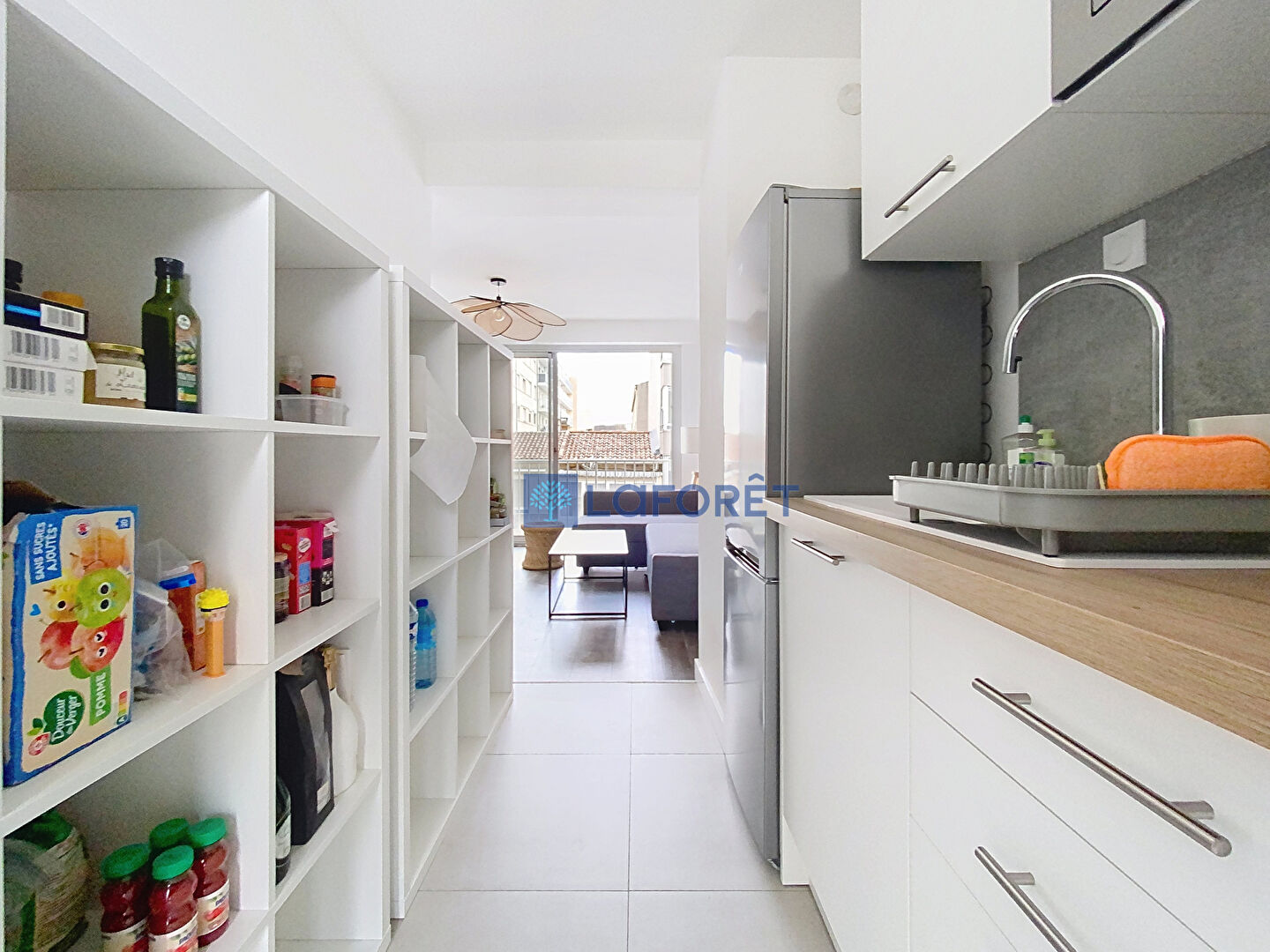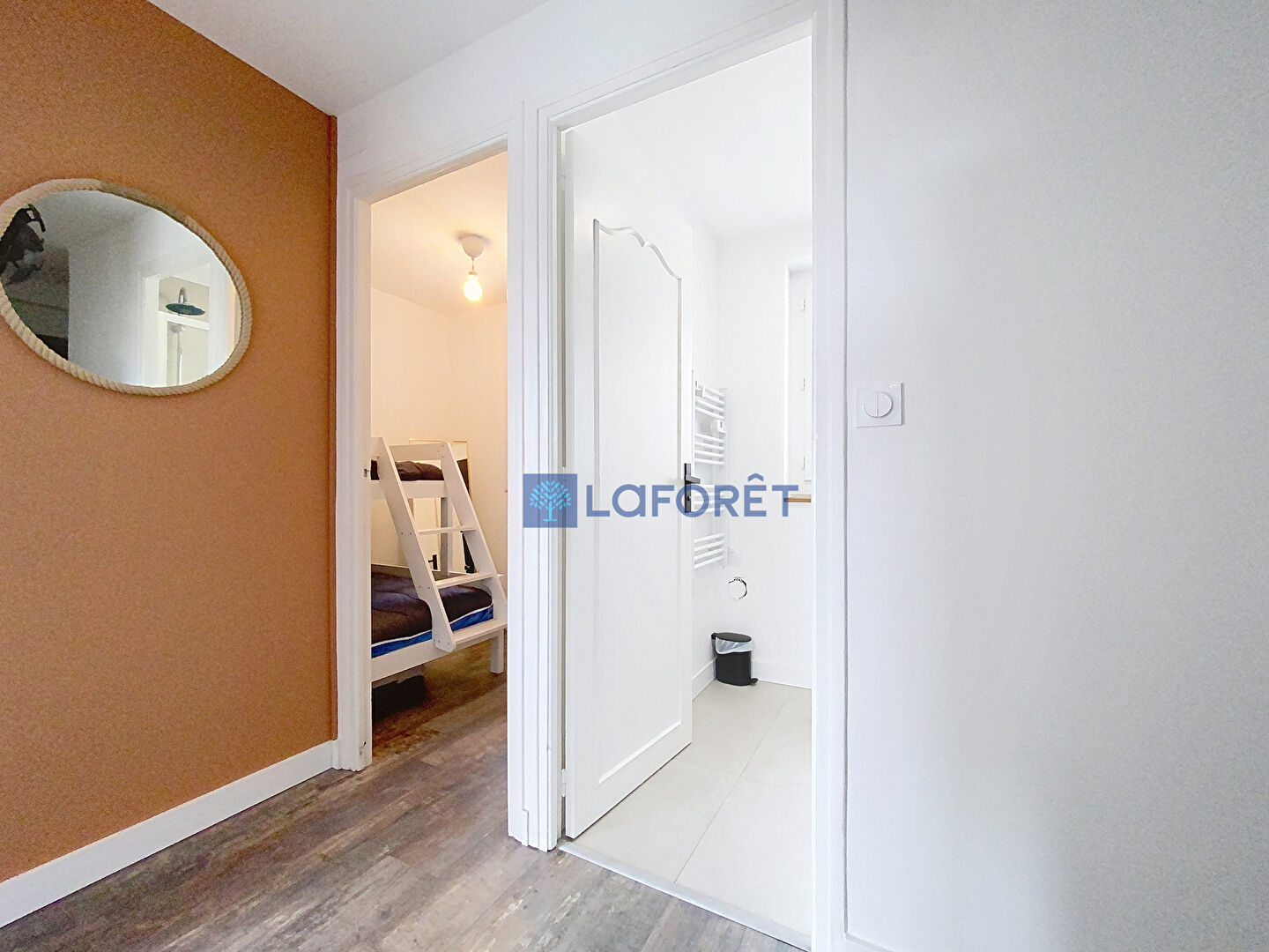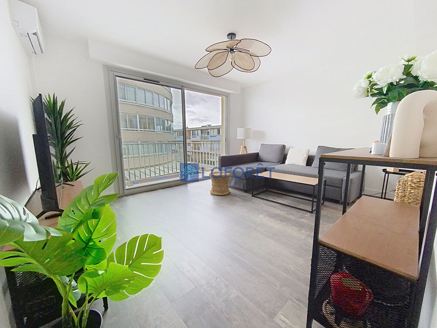 Vous profiterez d'un séjour baigné de lumière avec sa jolie vue mer du balcon, une cuisine US tout équipée ouverte sur l'extérieur, une chambre confortable communiquant sur le balcon également, une cabine, une salle d'eau ainsi que des wc séparés.