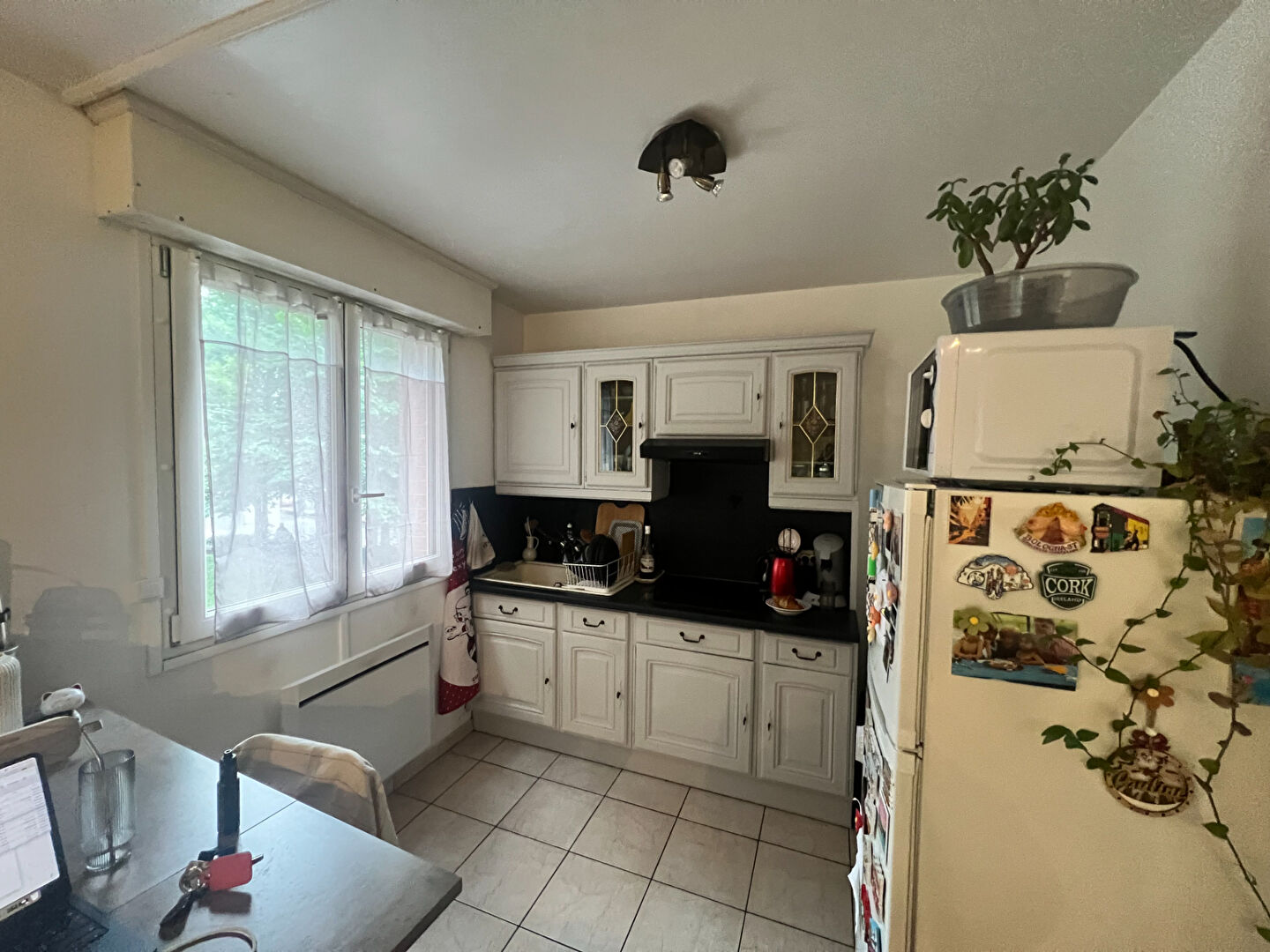Il se compose d'une entrée avec placard, d'une salle de bains avec fenêtre, ainsi que d'une cuisine ouverte sur le séjour bénéficiant d'une belle luminosité grâce à une vue dégagée sur le square.