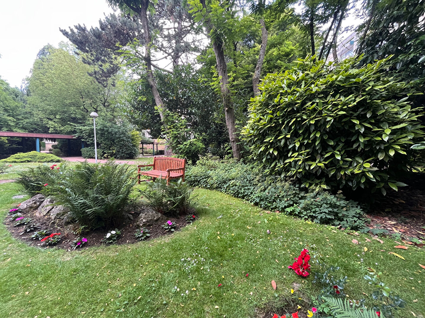 Séjour avec vue sur le parc de la résidence, cuisine équipée, salle de douches, WC séparés, 2 chambres.