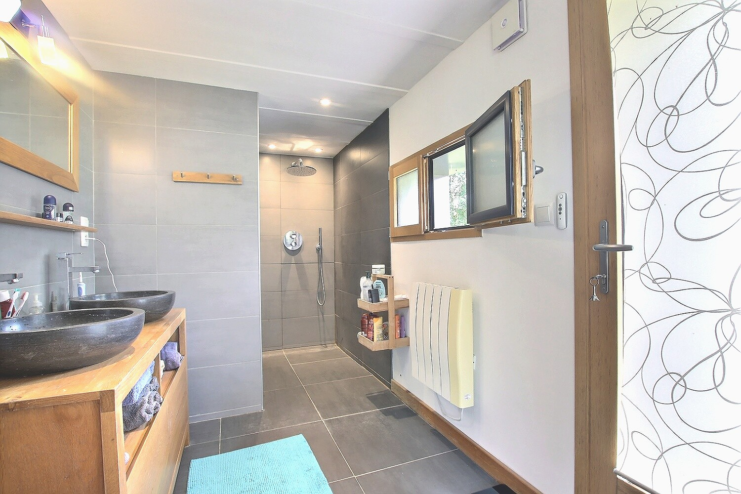 3 chambres dont une grande suite parentale, une mezzanine à l'étage idéale pour le télétravail ou pour faire salle de jeux, pièce de vie de plus de 50 m².
