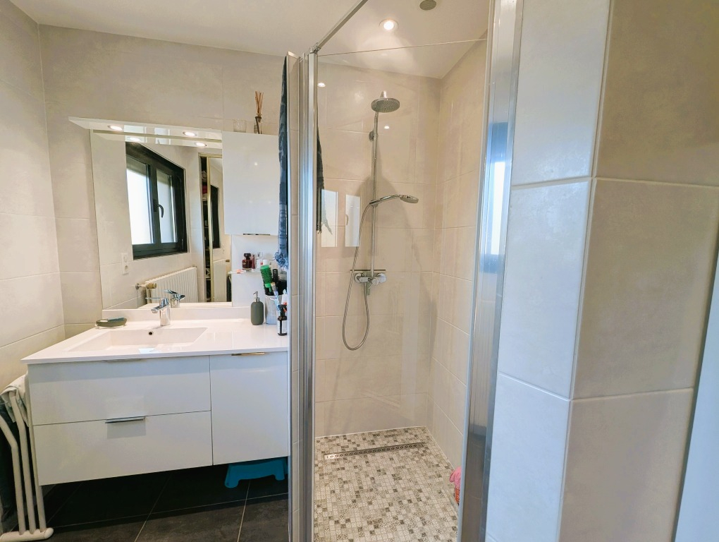 - Au rez-de-chaussée : une chambre de 13,5 m² avec sa salle d'eau privative de 3.7m² et wc séparé. Idéale pour un ado, une suite parentale ou pour recevoir.