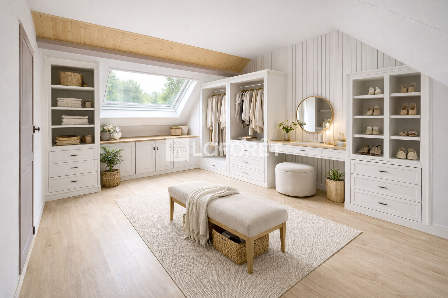 À l'étage, trois chambres supplémentaires viennent enrichir les possibilités d'aménagement, dont une grande chambre permettant la création d'une suite parentale, d'un bureau ou d'un espace polyvalent selon les besoins. L'ensemble de la maison bénéficie de belles ouvertures, assurant une luminosité naturelle constante et une relation harmonieuse avec le jardin.