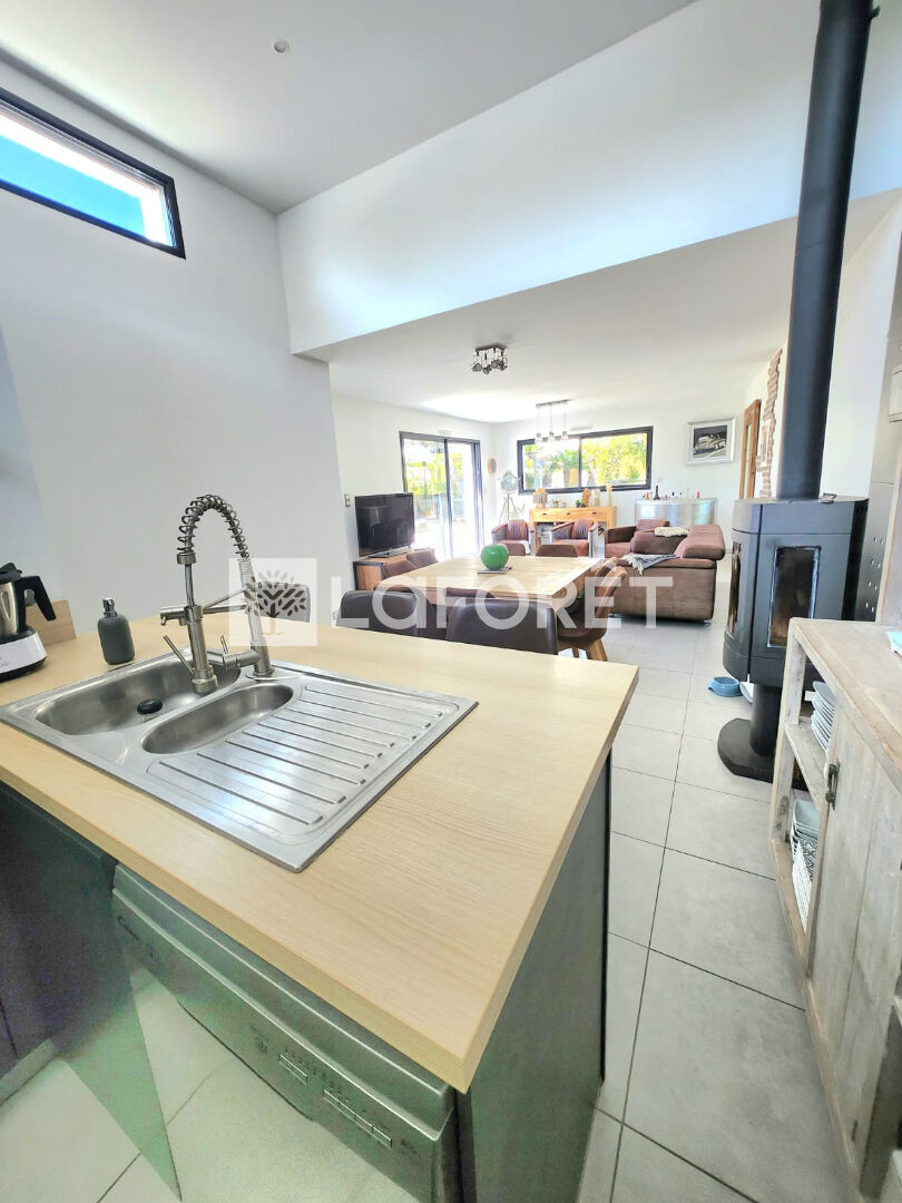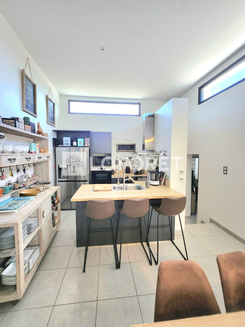 Dès l'entrée, vous serez charmé par ses VOLUMES et sa LUMINOSITE . La pièce de vie spacieuse, ouverte sur l'extérieur et orientée sud, offre un CADRE CONVIVIAL avec une CUISINE MODERNE entièrement équipée.