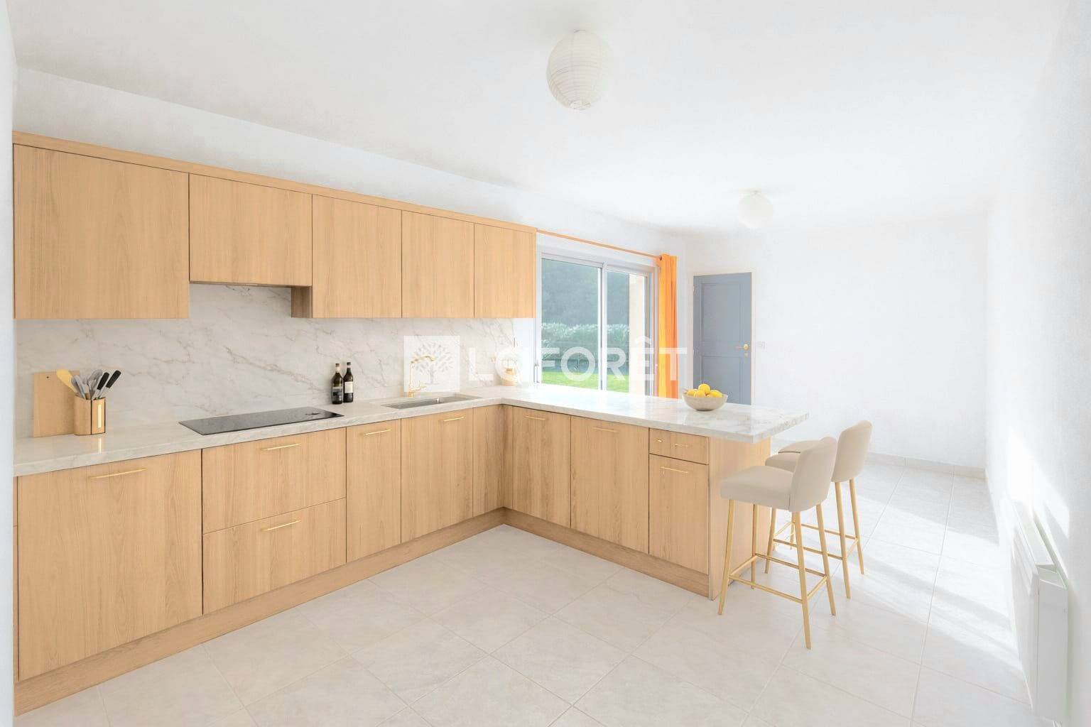 La cuisine aménagée, fonctionnelle et lumineuse, s'inscrit dans une distribution FLUIDE et bien pensée. Elle offre également la possibilité d'être ouverte sur le séjour, renforçant encore la CONVIVIALITÉ et les volumes de la pièce de vie. L'ensemble est idéal pour la vie de famille comme pour recevoir.