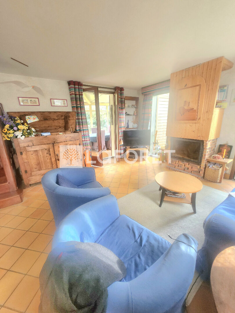 Dès l'entrée entièrement vitrée, la maison révèle une atmosphère lumineuse et accueillante. Le rez-de-chaussée s'organise autour d'un BEL ESPACE DE VIE COMPRENANT SALON, SÉJOUR ET SALLE À MANGER AVEC CHEMINÉE, idéal pour partager des moments chaleureux en famille ou entre amis. La CUISINE, largement ouverte sur l'extérieur grâce à ses grandes surfaces vitrées, bénéficie également d'une agréable lumière naturelle.