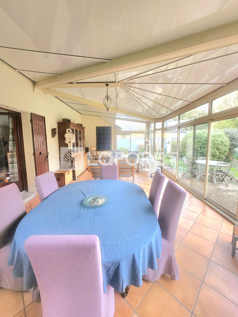 Située à QUELQUES MINUTES SEULEMENT DES PLAGES DE LA TURBALLE, dans un ENVIRONNEMENT PRIVILÉGIÉ, VERDOYANT ET À L'ABRI DE TOUTE CURIOSITÉ ET DES REGARDS, cette charmante maison familiale séduit par sa LUMINOSITÉ, SES BEAUX VOLUMES, ET LA QUALITÉ DE SON CADRE DE VIE.